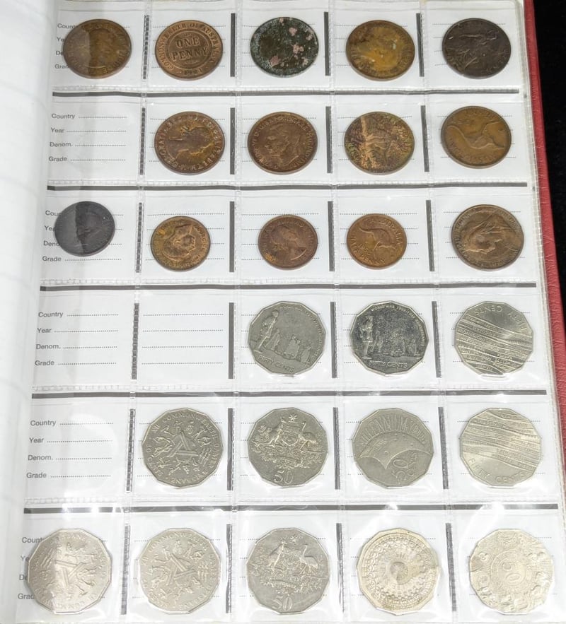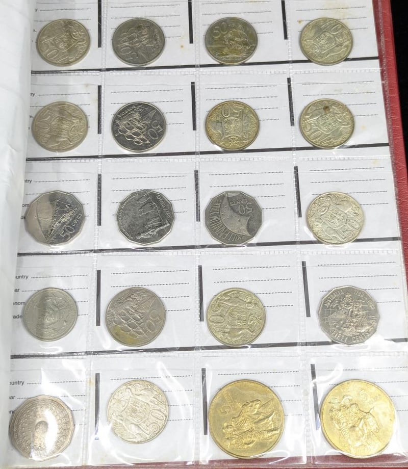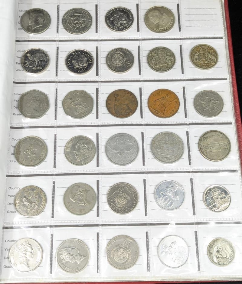 COLLECTION OF AUSTRALIAN AND WORLD COINS IN ALBUMN Various Coin Dates Of Issue And Editions Including Australian Penny Collection, 2000 Millenium Year Fifty Cent, 1966 Round Fifty Cent Collection, 2018 Eternal Flame Two Dollar Coins, 2020 End Of Second World War Two Dollar, 2020 Donation Dollar Coins 2012 Remembrance Two Dollar, Various World Coins With Countries Including New Zelaand, Uk, Usa, Etc 587885+1