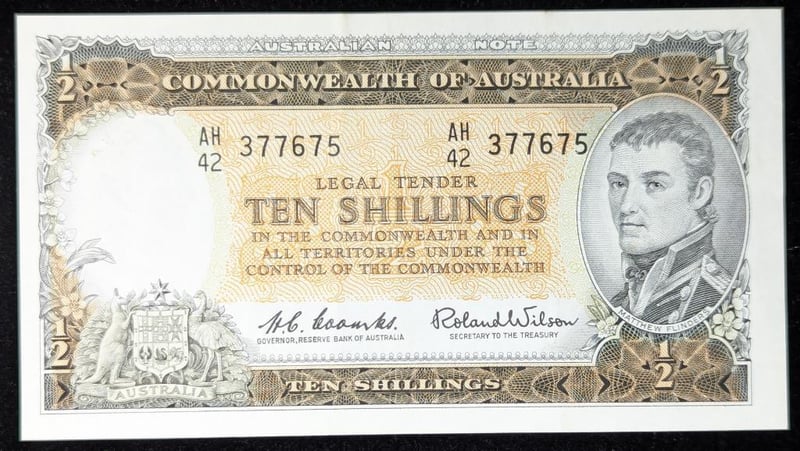 COMMONWEALTH OF AUSTRALIAN RESERVE BANK TEN SHILLING BANKNOTE SIGNED BY COOMBS/WILSON Condition: EF587885+19