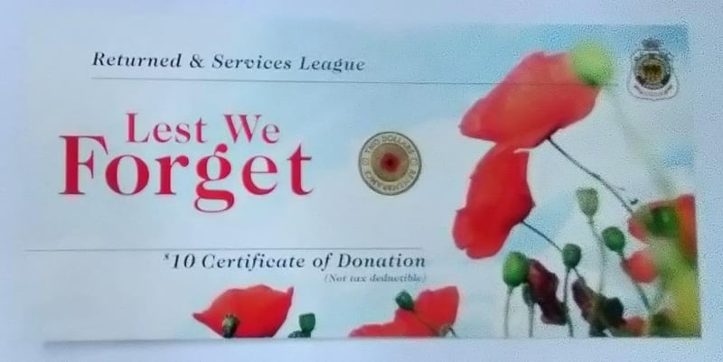 2012 $2 RED POPPY RARE COIN WITH RSL CERTIFICATE
