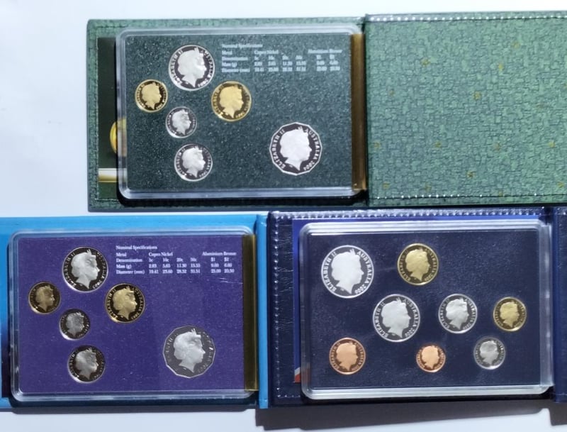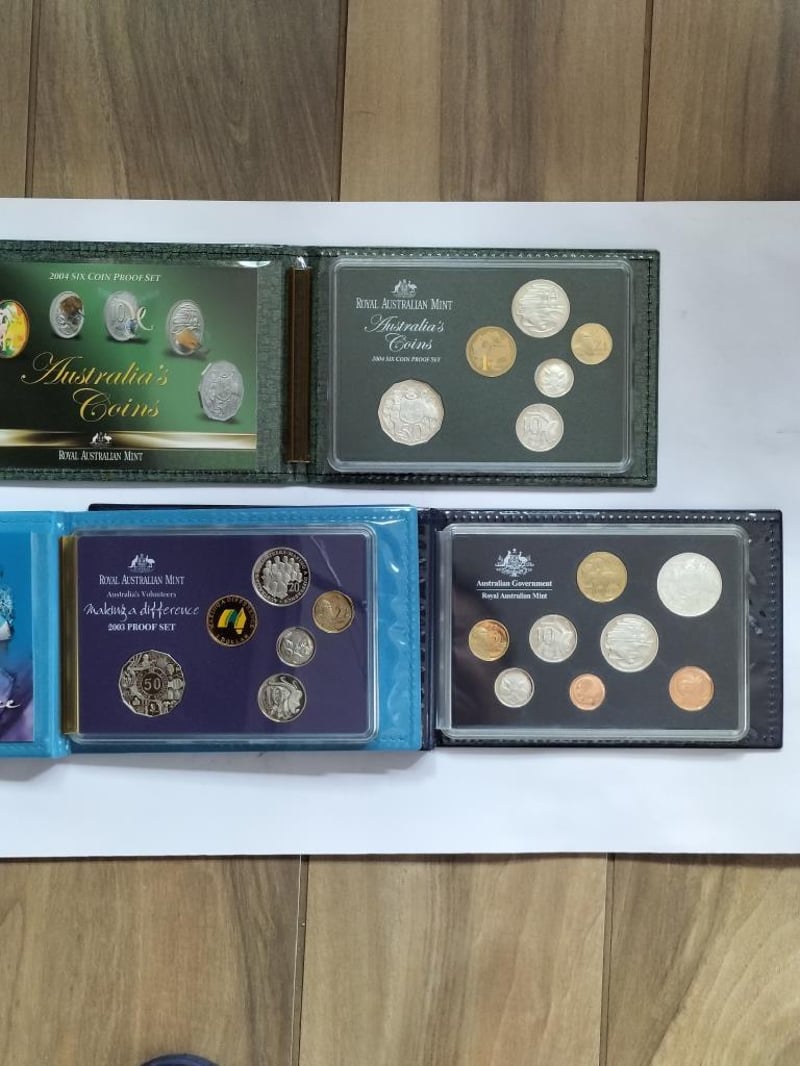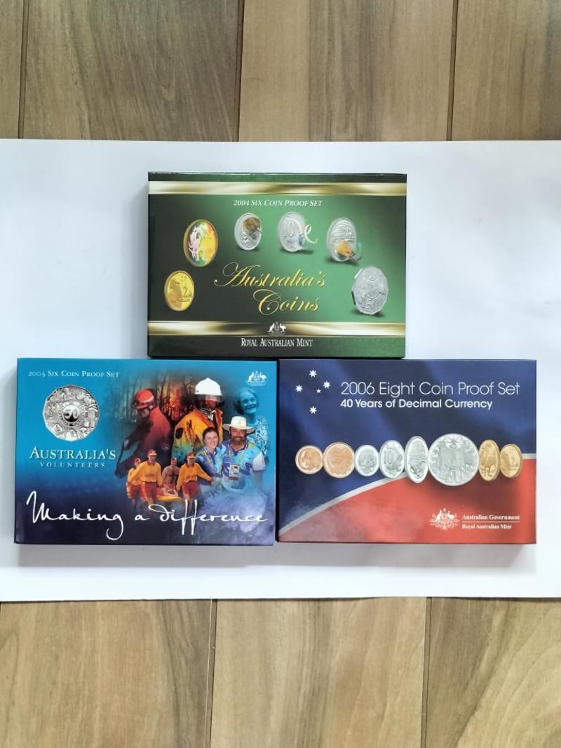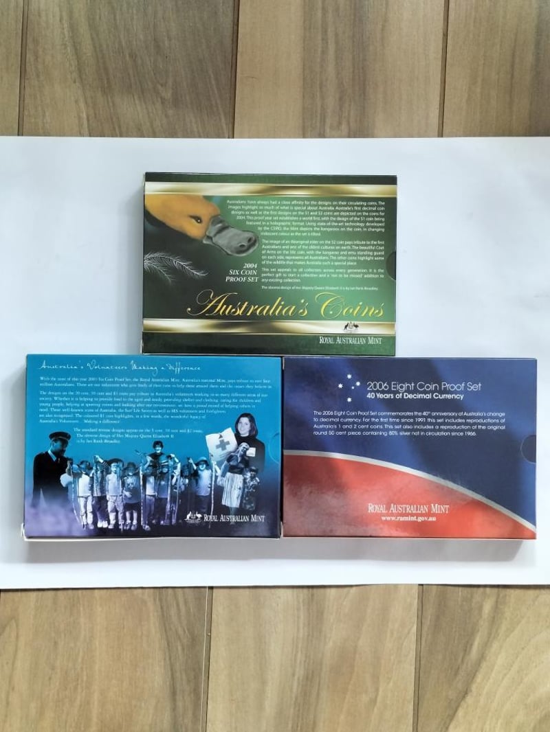 POPULAR DUAL PROOF SET 2003 AUSTRALIA VOLUNTEERS; 2004 SIX COIN PROOF SET WITH RARE HOLOGRAM $1; 2006 EIGHT COIN PROOF SET WITH 1C &2C