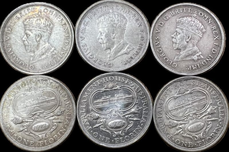 1927 AUSTRALIA SILVER CANBERRA FLORIN X 3