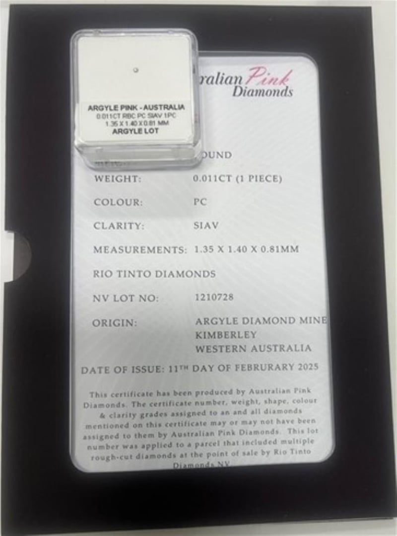 0.011 CARAT PINK ARGYLE DIAMOND PC 1 ROUND DIAMOND CERTIFIED 311178+41