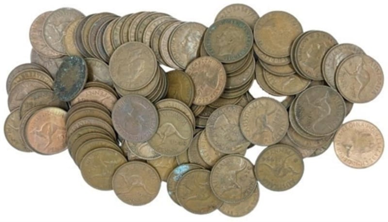 ONE KILO OF AUSTRALIA KGV/KING GEORGE VI/QUEEN ELIZABETH MIX DATE & CONDITION BULK PENNIES & HALF PENNIES 311182+22