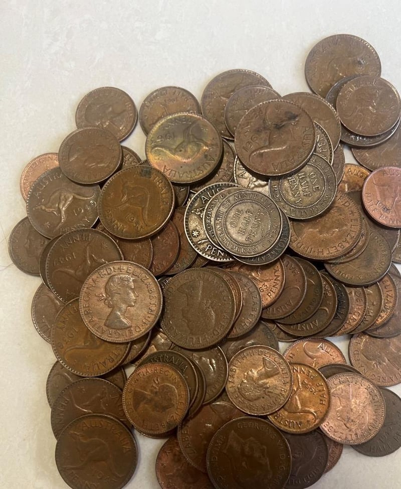 ONE KILO OF AUSTRALIA KGV/KING GEORGE VI/QUEEN ELIZABETH MIX DATE & CONDITION BULK PENNIES & HALF PENNIES 311182+40