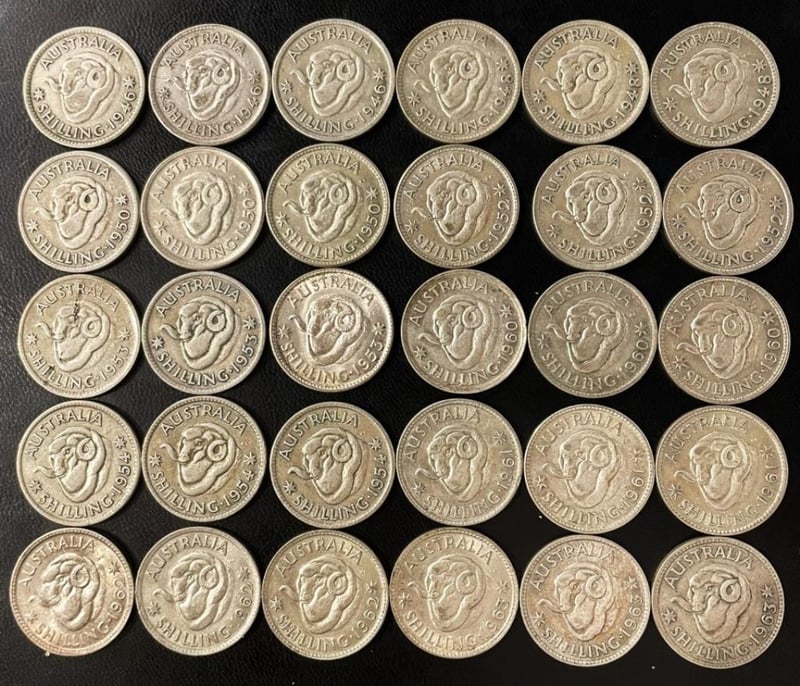 30X SILVER SHILLING COINS 0.500 SILVER 3X Coins Of Each Of 1946, 48, 50, 52, 53, 54, 60, 61, 62 And 1963 488550+17