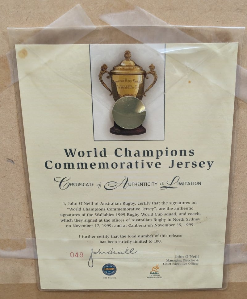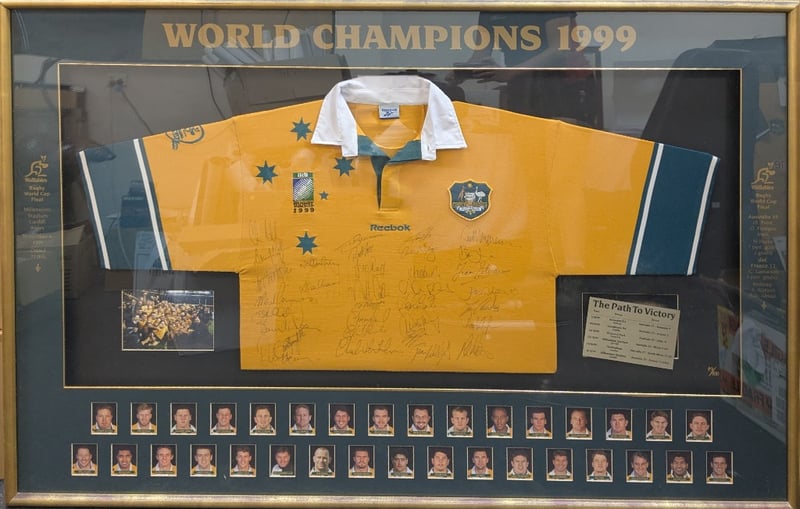 LIMITED EDITION 1999 WORLD CHAMPIONS SIGNED AND FRAMED WALLABIES JERSEY