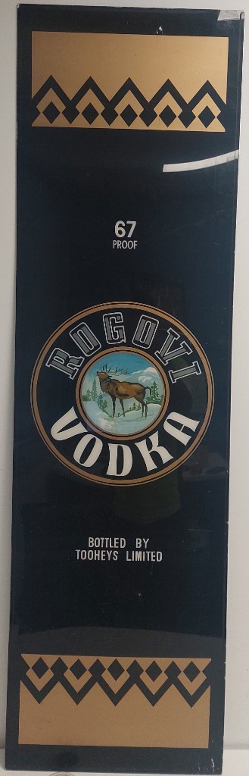 Vintage advertising sign for Rogovi Vodka.