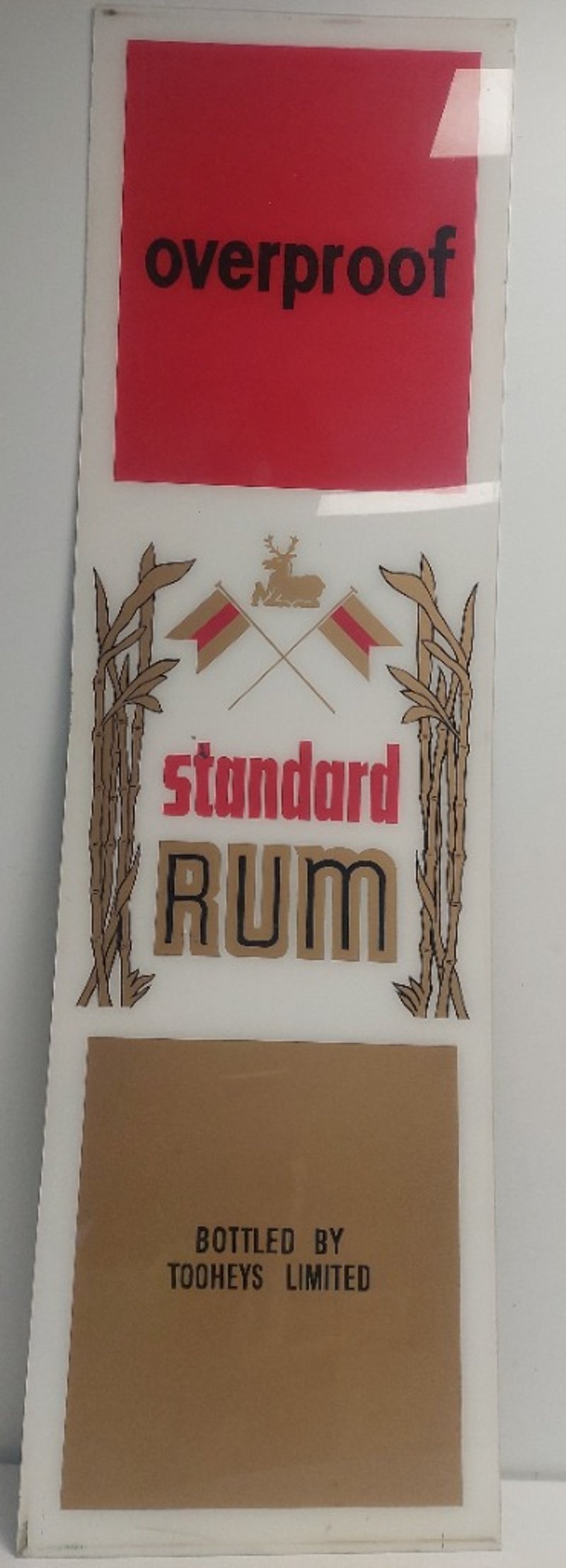 Vintage advertising sign for overproof standard RUM.Dimensions: 44cm L, 151cm H, 1cm WNote: signs of wear.