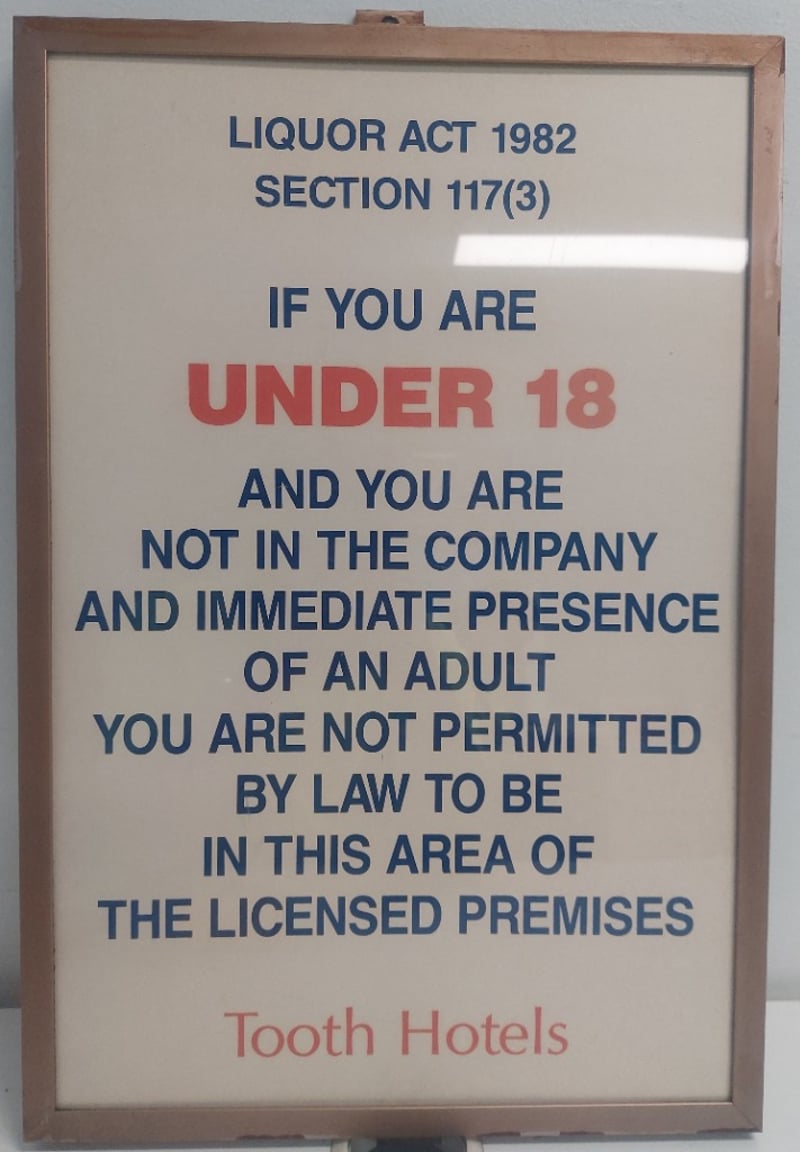 Vintage framed sign displays a mandatory legal notice under Section 117(3) of the Liquor Act 1982 from New South Wales.