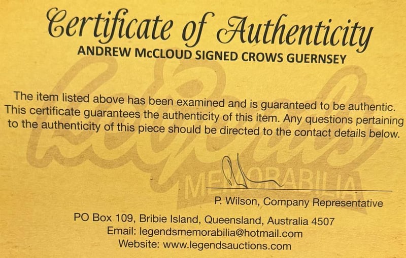 An Adelaide Crows Gurnsey Personally Signed By Andrew Mcleod. Andrew Mcleod Is A Former Professional Australian Rules Footballer Who Played For The Adelaide Football Club In The Afl.