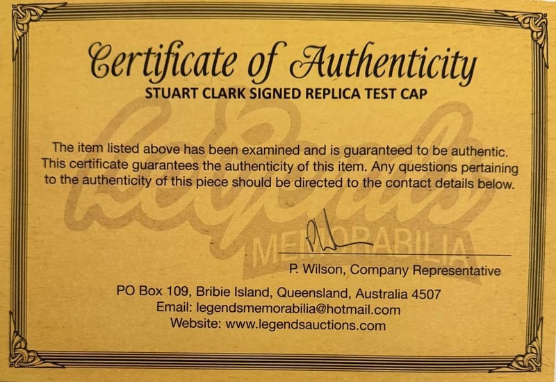 An Australian Replica Test Cap Personally Signed By Stuart Clark. Stuart Clark Is An Australian Former Cricketer Who Played For New South Wales And The Australian Team.