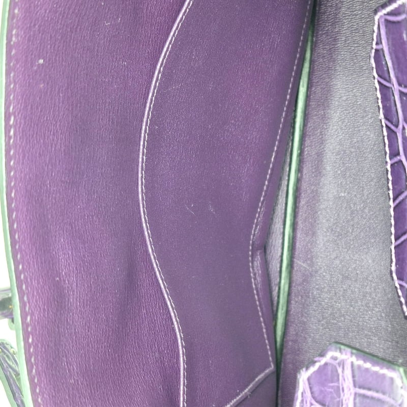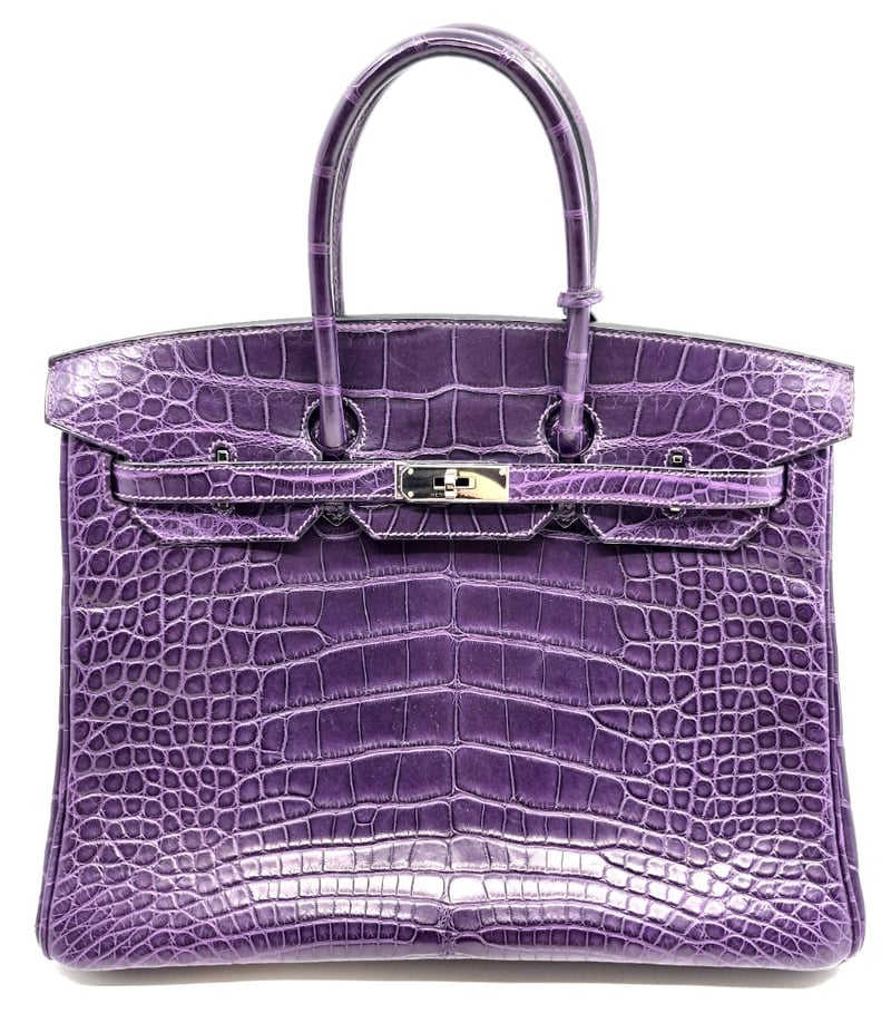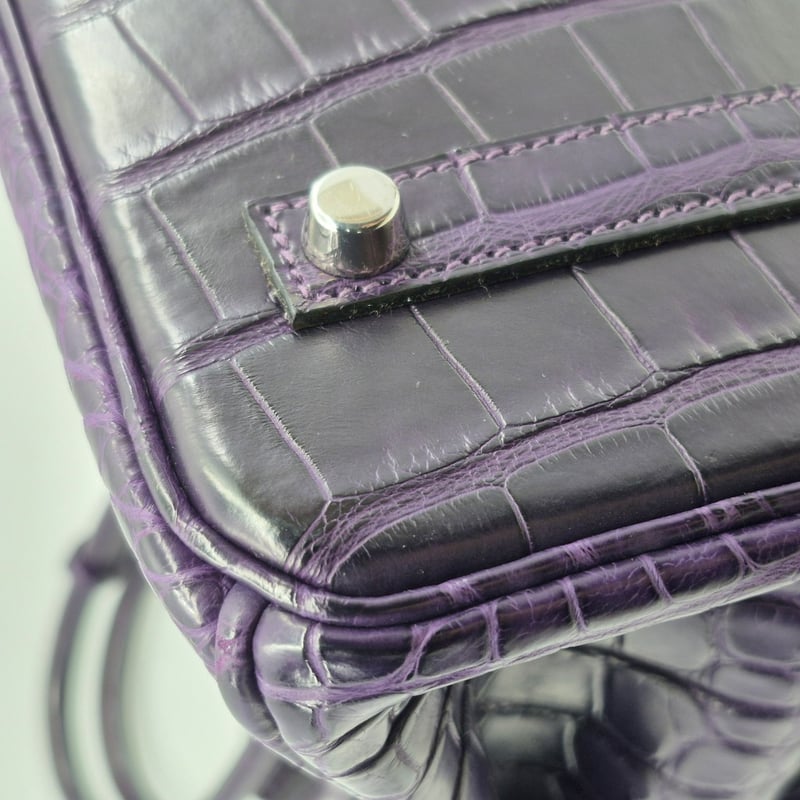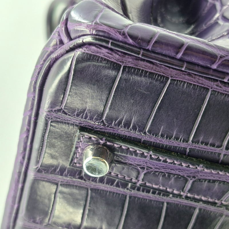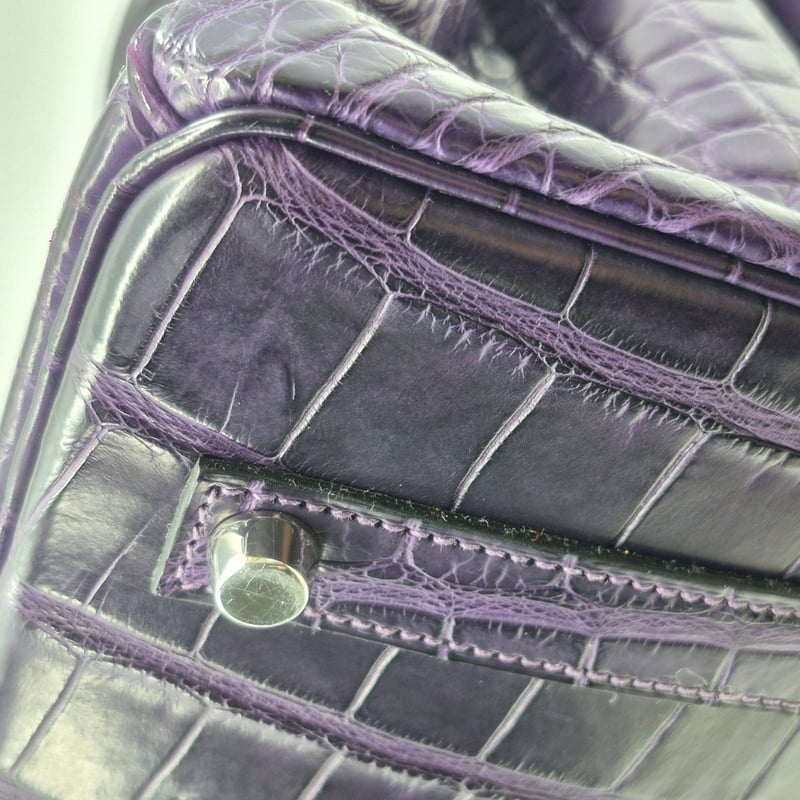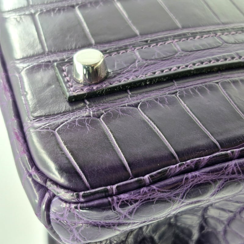POROSUS CROCODILE COLOURED IN AMETHYST, TURN-LOCK CLOSURE AT FRONT.