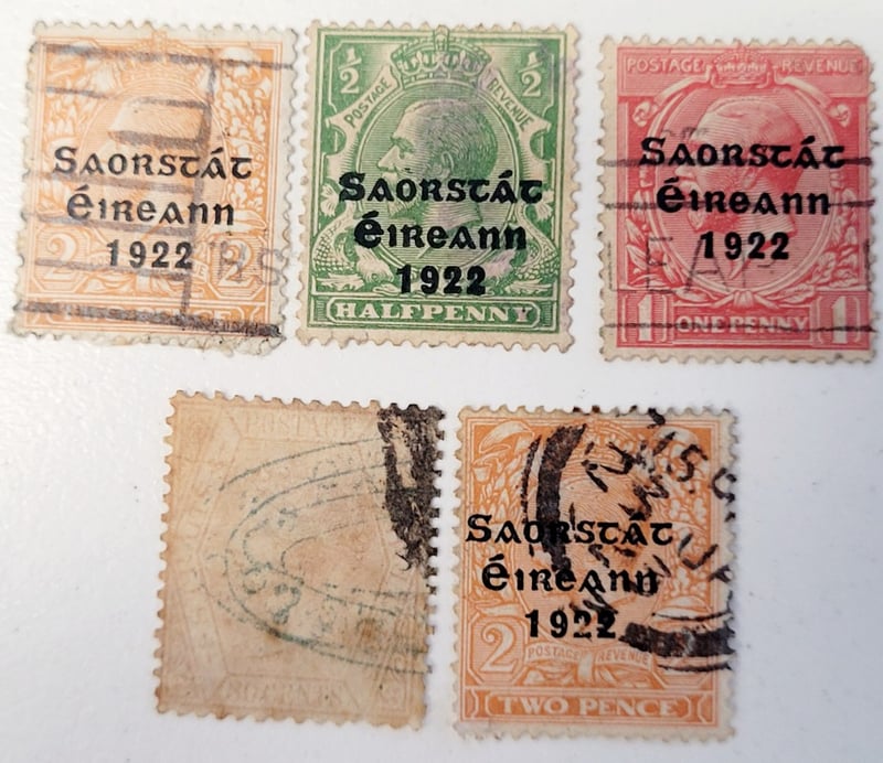 SET OF 1867 AND 1922 BRITISH EMPIRE STAMPSProvenance: Includes - - 1867 - 72 Straits Settlements 30C Claret, Qv , Cc Wmk , Sg17 With Rare Blue Cancellation - 1922-23 Ireland, 1/2 , 1 And 2 X 2 Pence " 3 Line " Overprints , All Showing " Inserted Accent " Variety488458+56