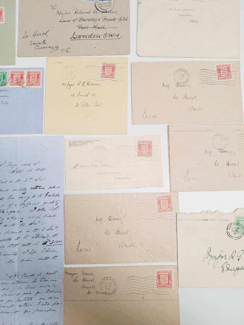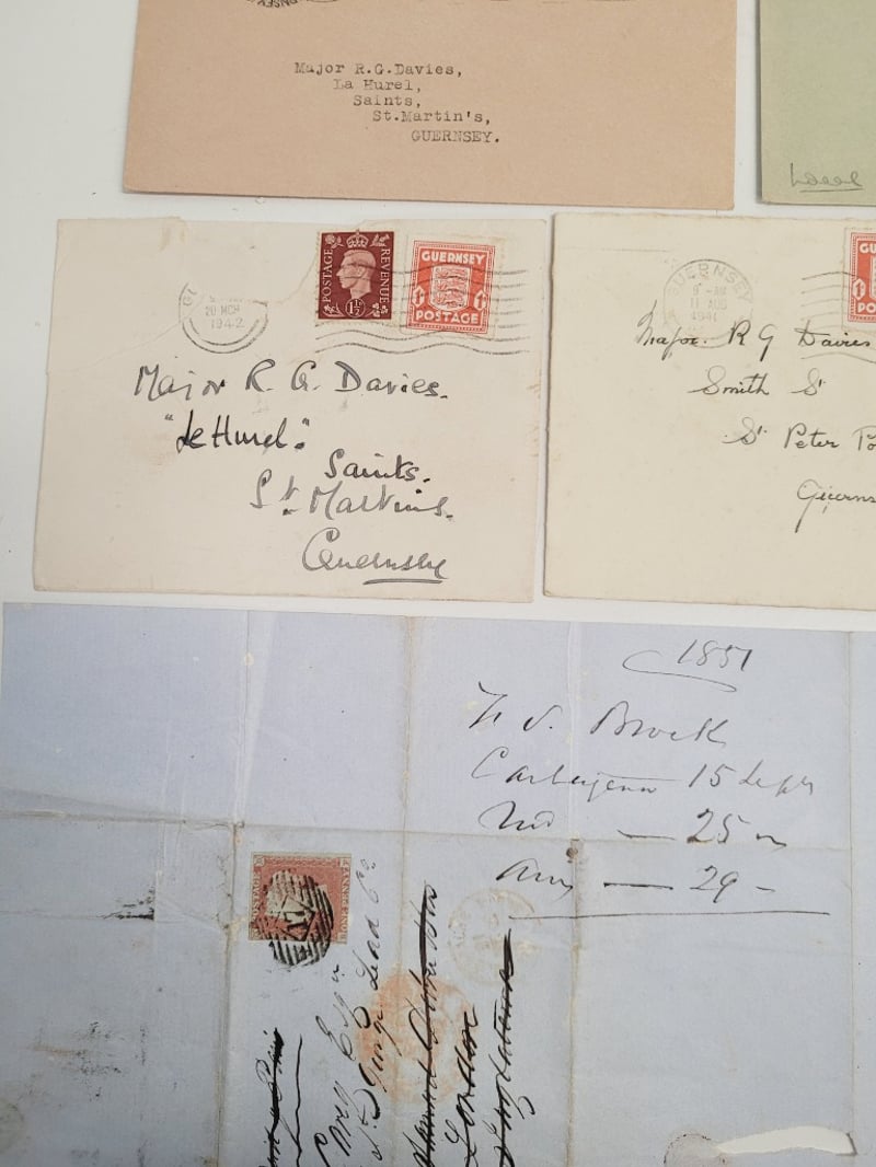 1841 PENNY RED GREAT BRITAIN IMPERFORATE TIED TO WWII LETTER WITH RARE COVER + WWII COVERS ( MAJOR RONALD G. DAVIES )