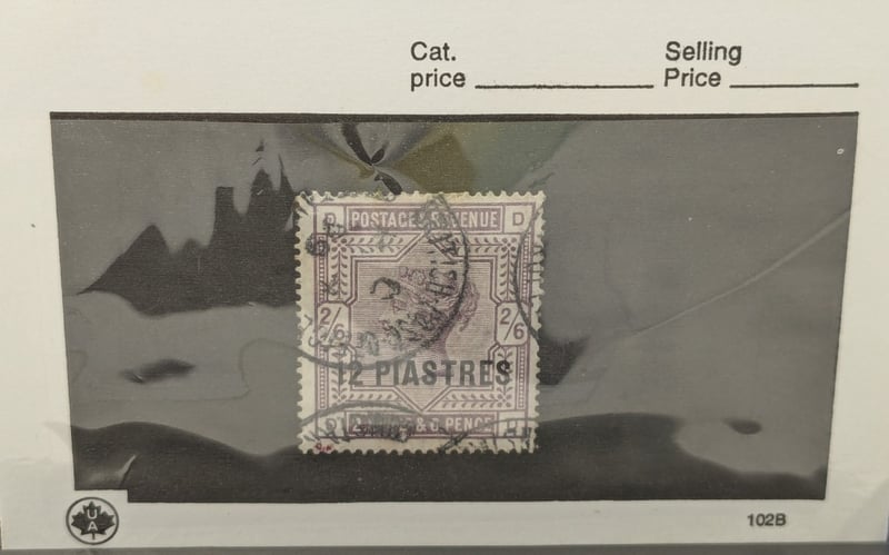 1885-88 12 PIASTRES ON 2 SHILLINGS & 6 FENCE OVERPRINT, S63, DARK LILAC ON BLUEISH PAPER