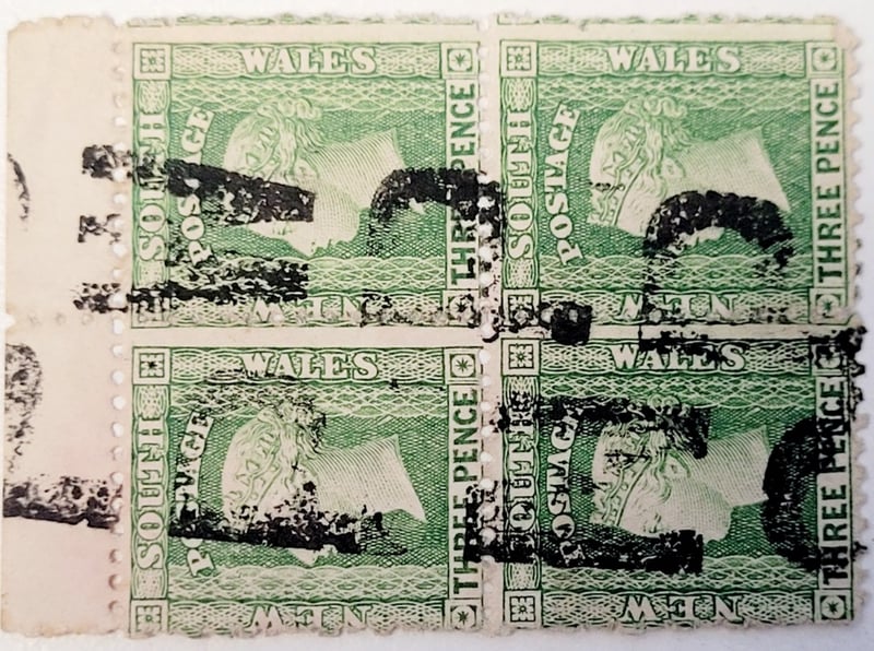 1860 ISSUE , QV ERROR , IMPERFORATE CENTRE STAMP , 3D GREEN , DIADEM , BLOCK OF 4