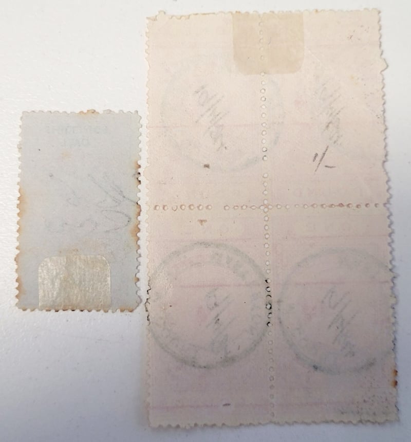 1882 Qv One Pound , Rose , Block Of 4 , Postal Fiscal , " Masterton M Court " Postmark 1867 Qv Stamp Duty ,Red/ Blue Twice Shillings , Hand Cancel