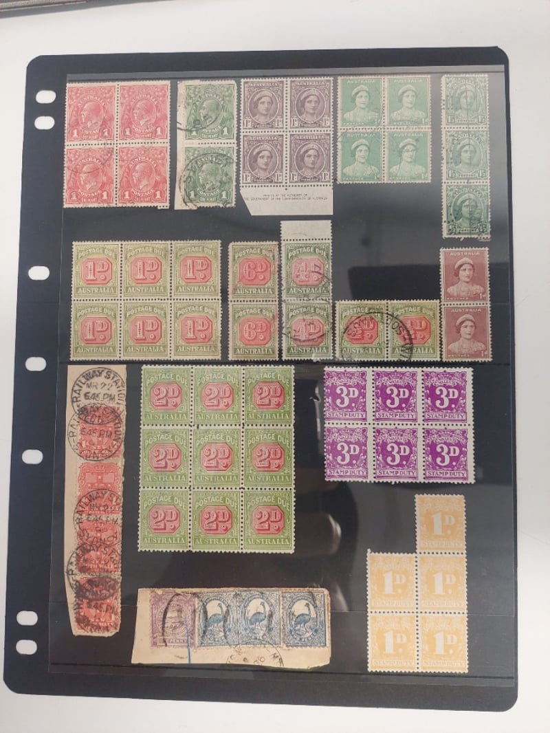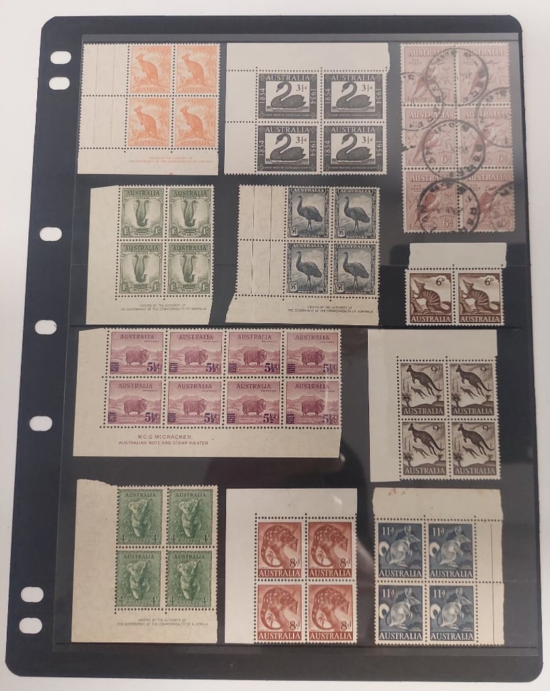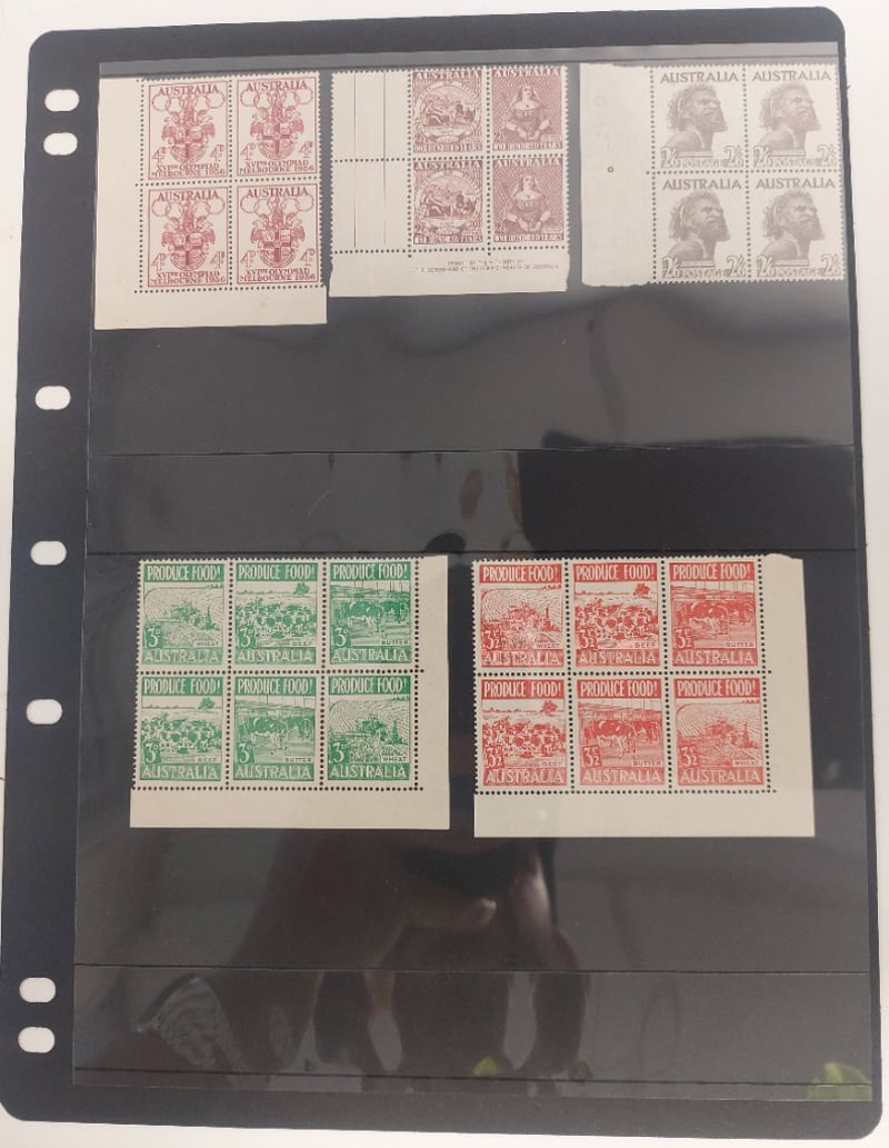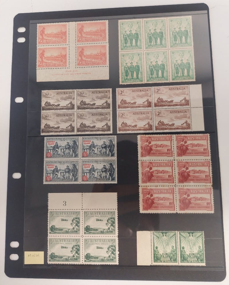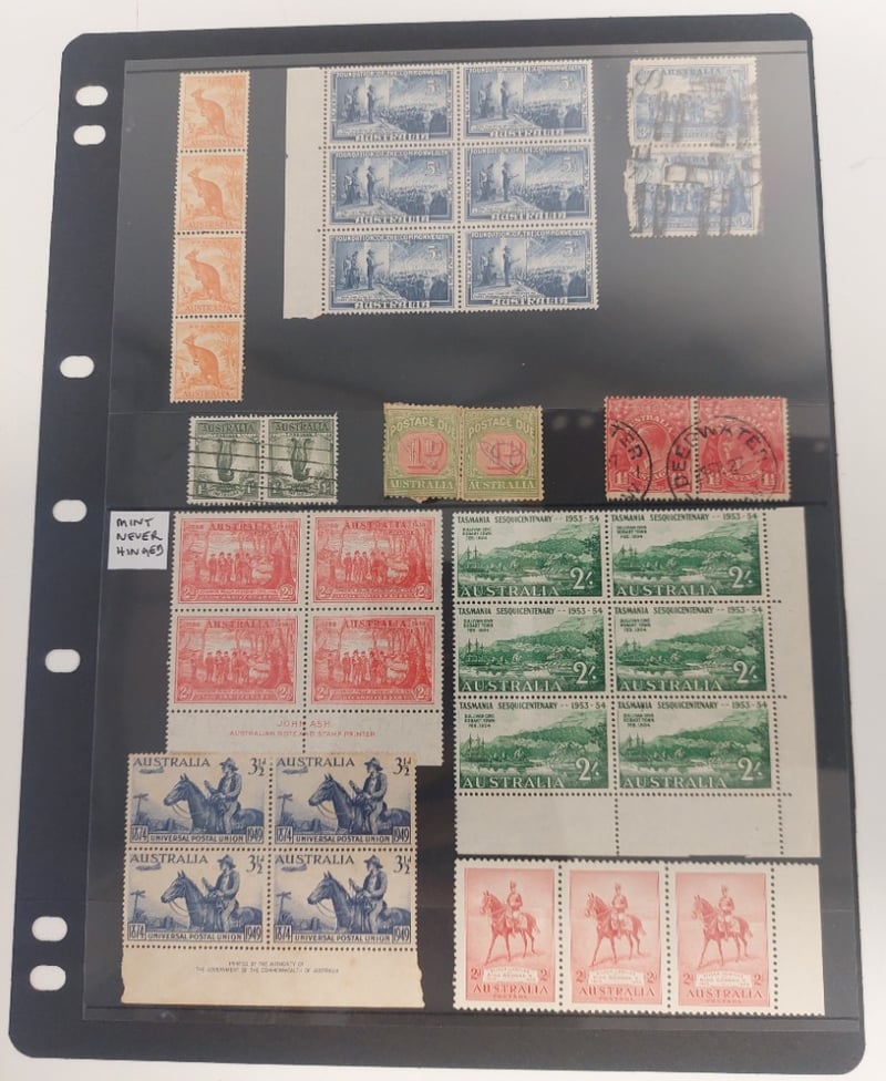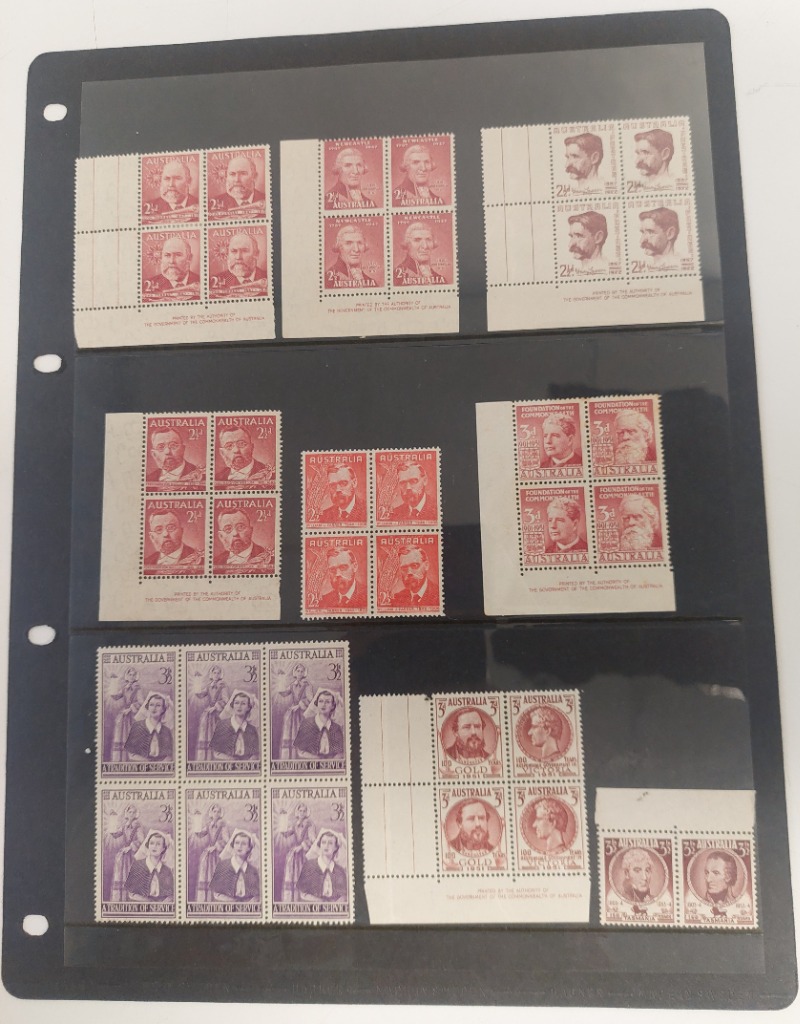 LARGE AUSTRALIAN COLLECTION OF LARGE BLOCKS STRIPS, PAIRS, MOSTLY MINT.