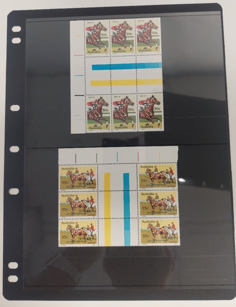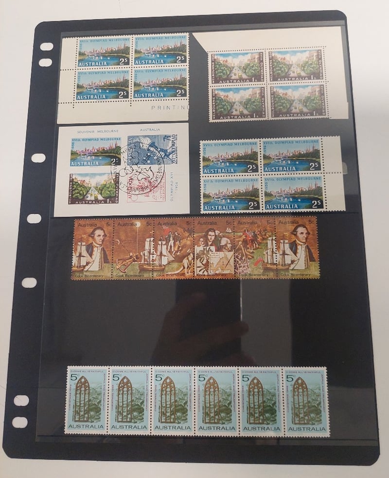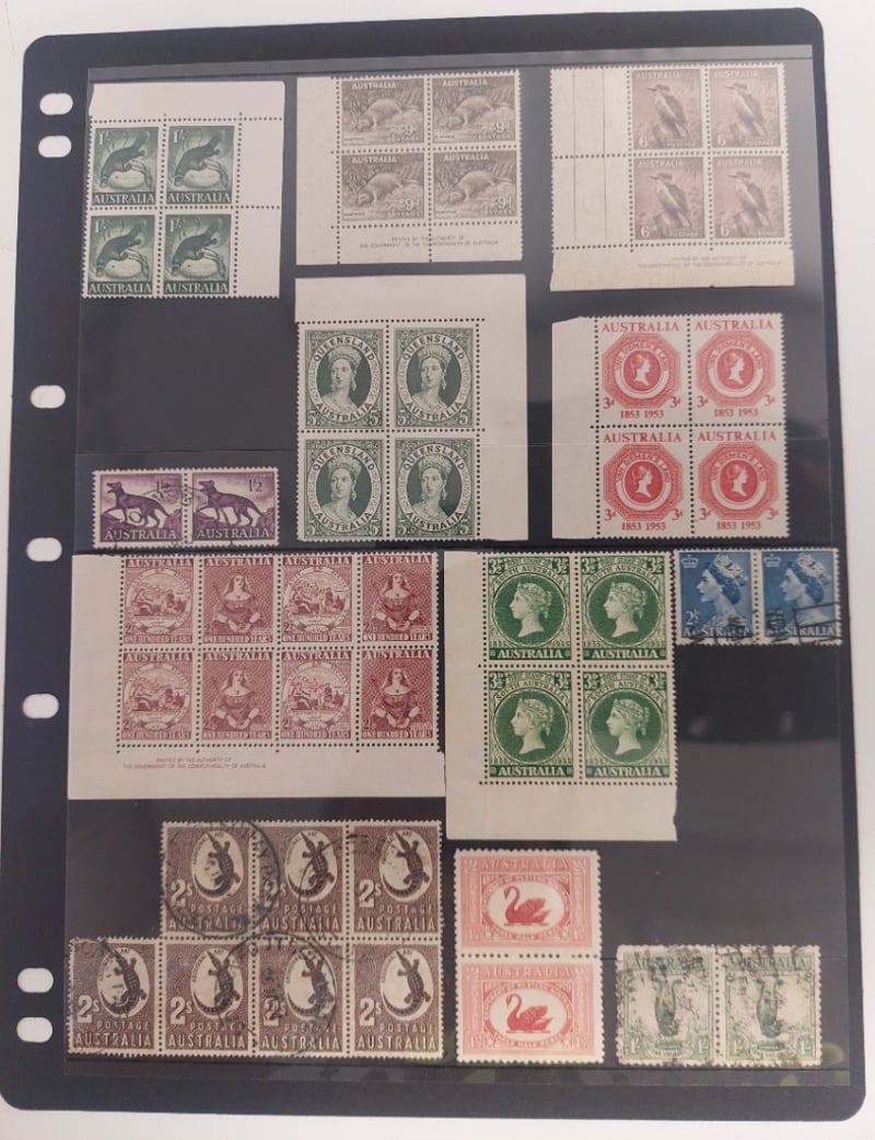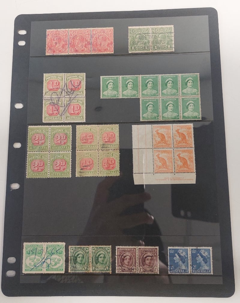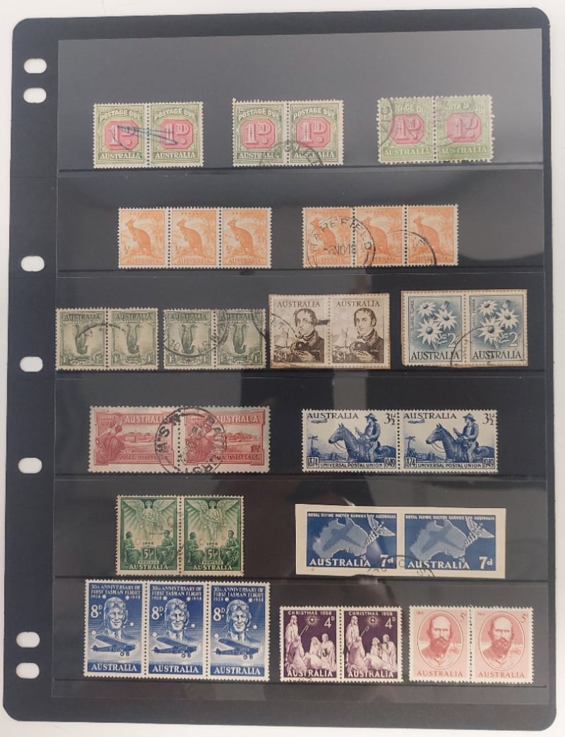 LARGE AUSTRALIAN COLLECTION OF LARGE BLOCKS STRIPS, PAIRS, MOSTLY MINT.