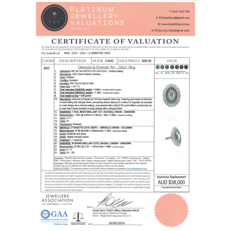 This valuation has been conducted by an independent third-party professional. The valuation amount is an assessment by the issuing valuer and does not reflect the auction value of the item.