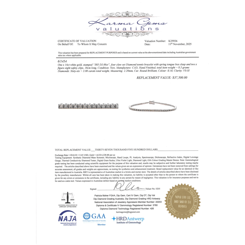The Design Features, 66 Round Brilliant Cut, Diamonds (3.00Ct Tdw, K-M Colour, Vs-Si Clarity), 4-Claw Set. The Bracelet Has A Box Clasp With Double Figure 8 Clasps. Bracelet Length Is 18Cm.