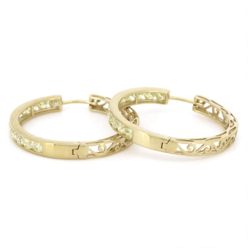 14K YELLOW GOLD, 1.98CT TDW DIAMOND, HOOP EARRINGS.
