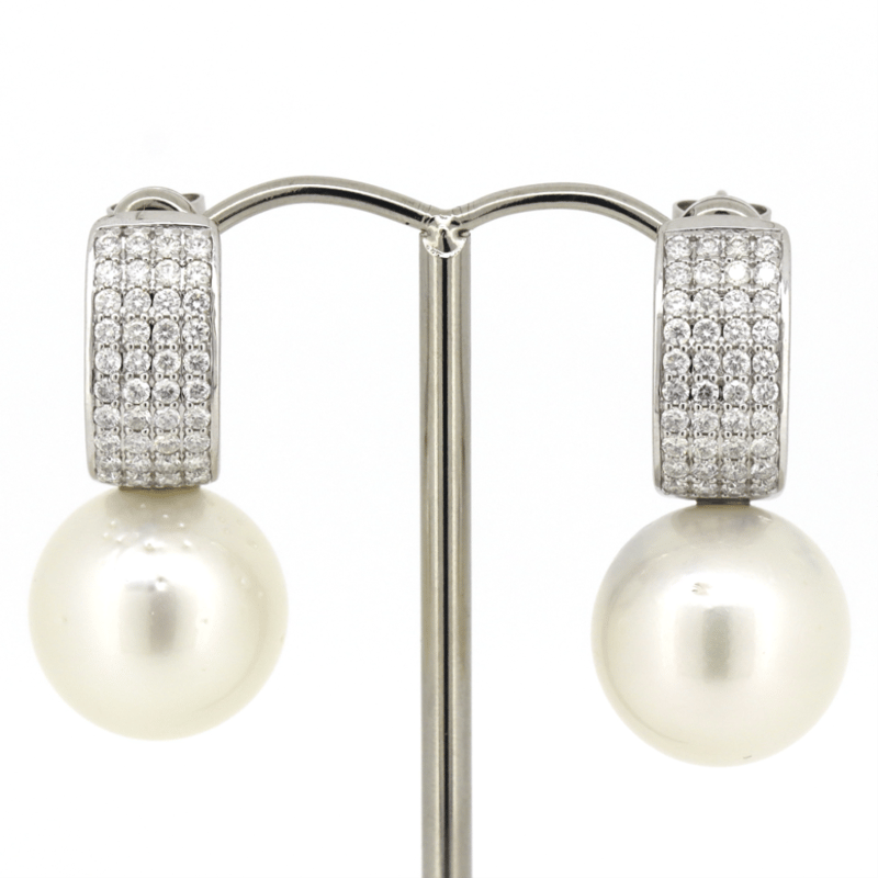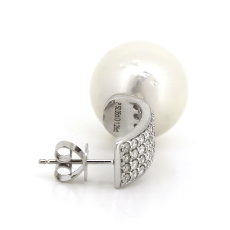 The Design Features, 2 Near Round, White With Silver Overtones, Cultured South Sea Pearls 16.00Mm, Lustre Aa), 1/2 Drilled And Capped. Encompassing The Design Are, 80 Round Brilliant Cut, Diamonds (1.25Ct Tdw, G-H Colour, Si1-Si2 Clarity), Pave Set. Earrings Have Post Backs And Come With 14K White Gold Backs.