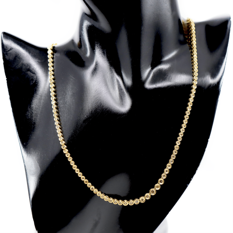 The Design Features, 99 Round Brilliant Cut, Diamonds (10.00Ct Tdw, Si1-Si2 Clarity), Bezel Set, Graduating In Size. The Necklace Has A Lobster Claw Clasp. Necklace Length Is 60Cm.