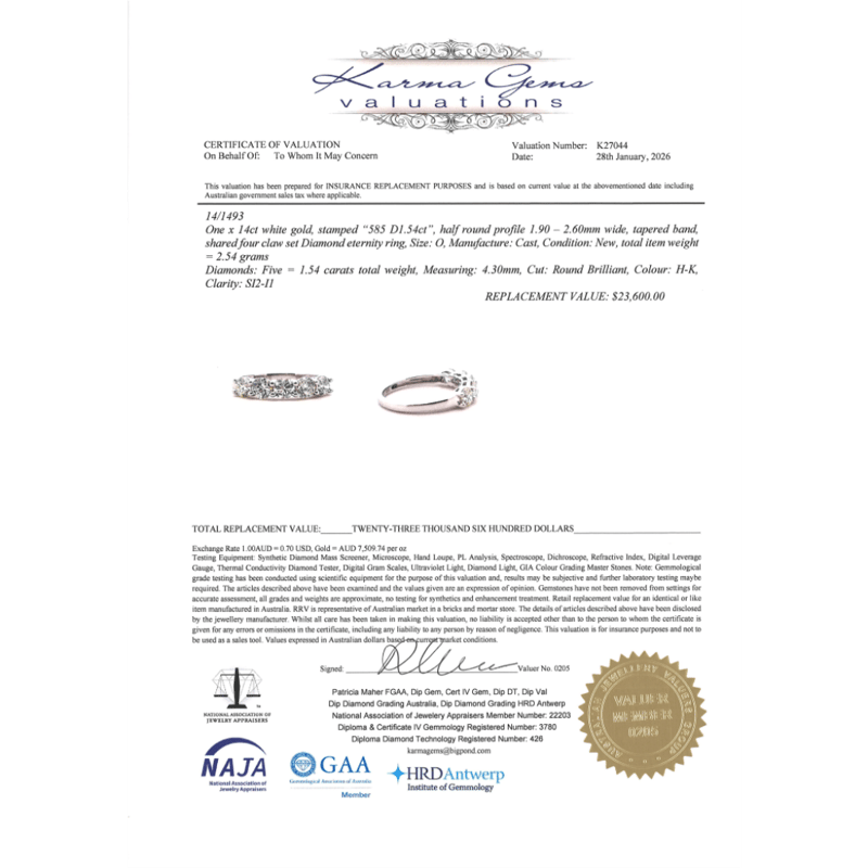 The Design Features, 5 Round Brilliant Cut, Diamonds (1.54Ct Tdw, H-K Colour, Si2-I1 Clarity), In A Shared Claw Setting. Ring Size O.