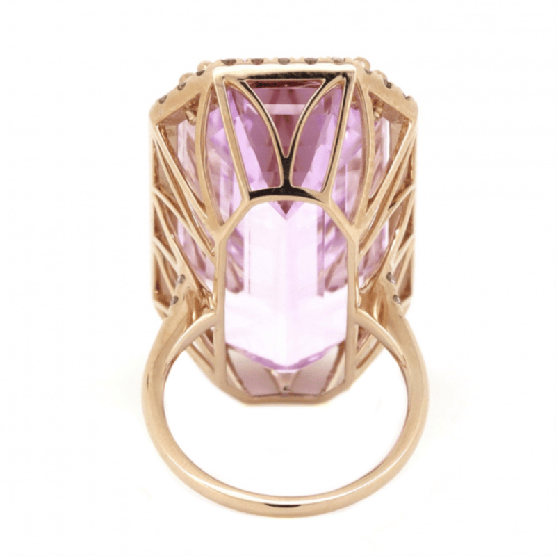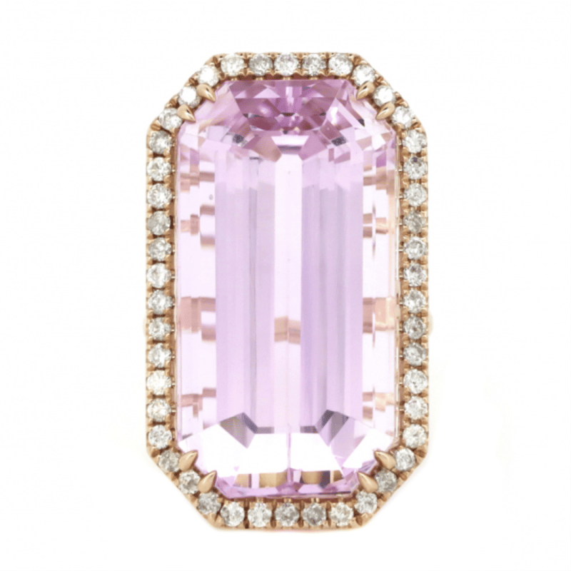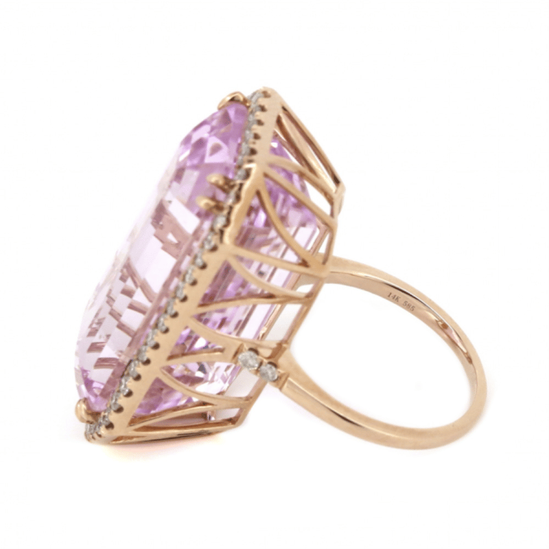 14K ROSE GOLD, 47.23CT KUNZITE AND DIAMOND, STATEMENT RING.