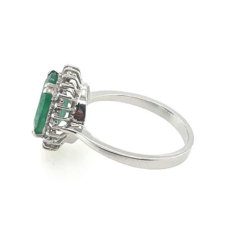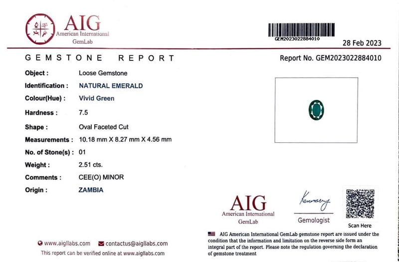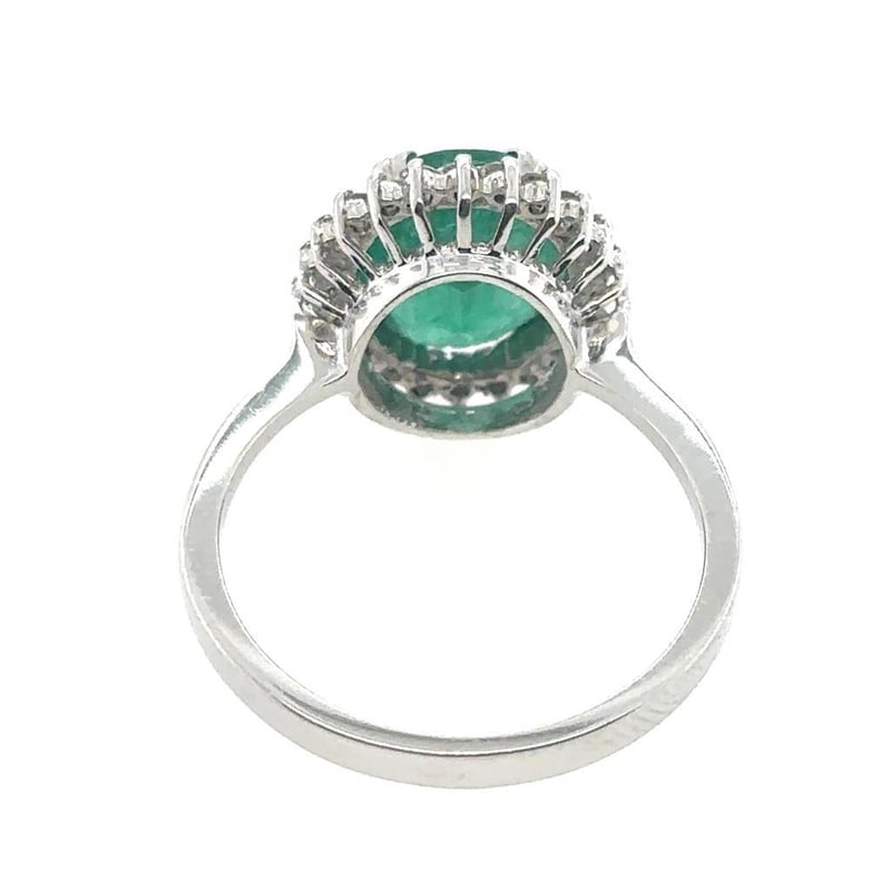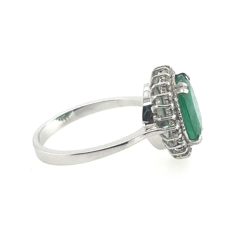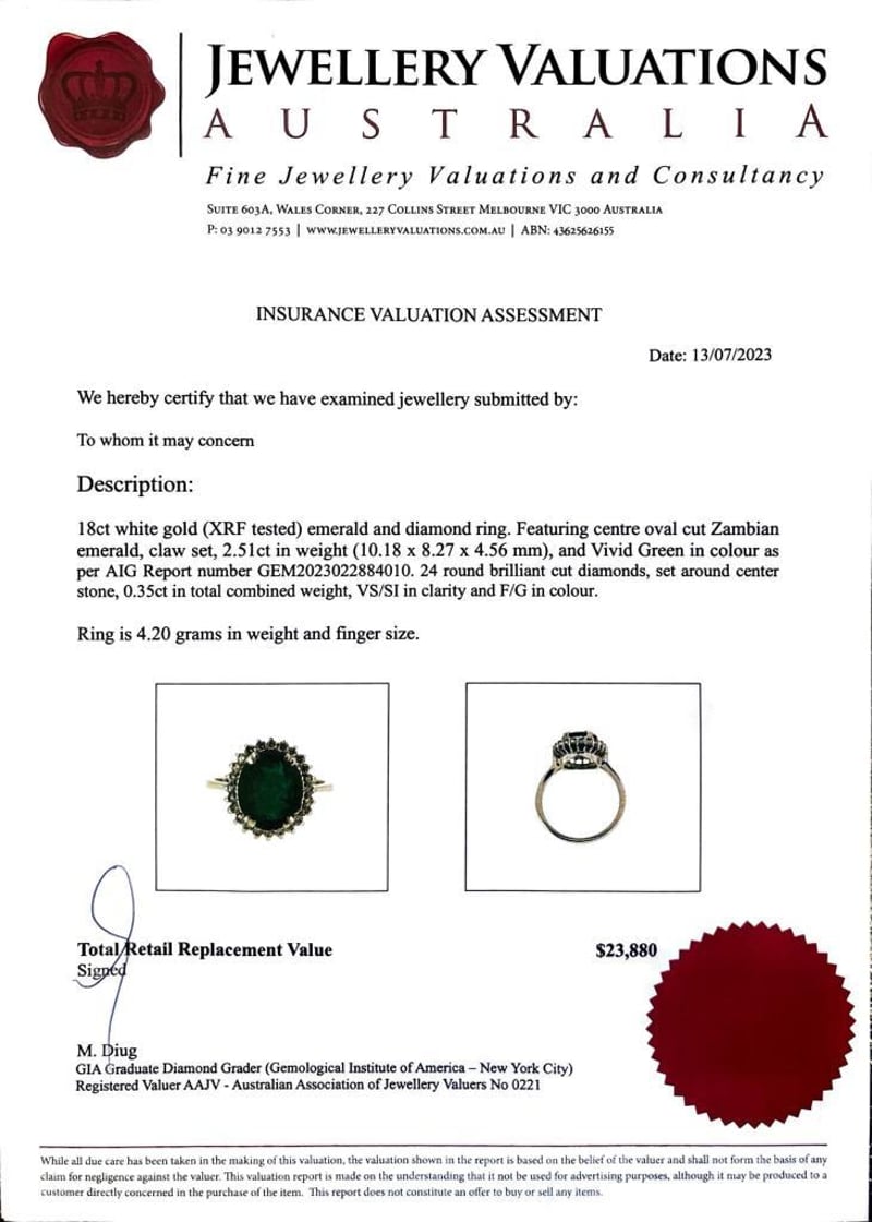 This 18Ct White Gold Xrf Tested Ring Features 1 X 2.51Ct Oval Cut Claw Set Zambian Emerald Measuring 10.18 X 8.27 X 4.56Mm, Colour: Vivid Green As Per Aig Report Number Gem2023022884010. This Ring Also Features 24 X Round Brilliant Cut Claw Set Diamonds Set Around The Centre Stone, Tcw: 0.35, Clarity: Vs-Si, Colour: F-G.