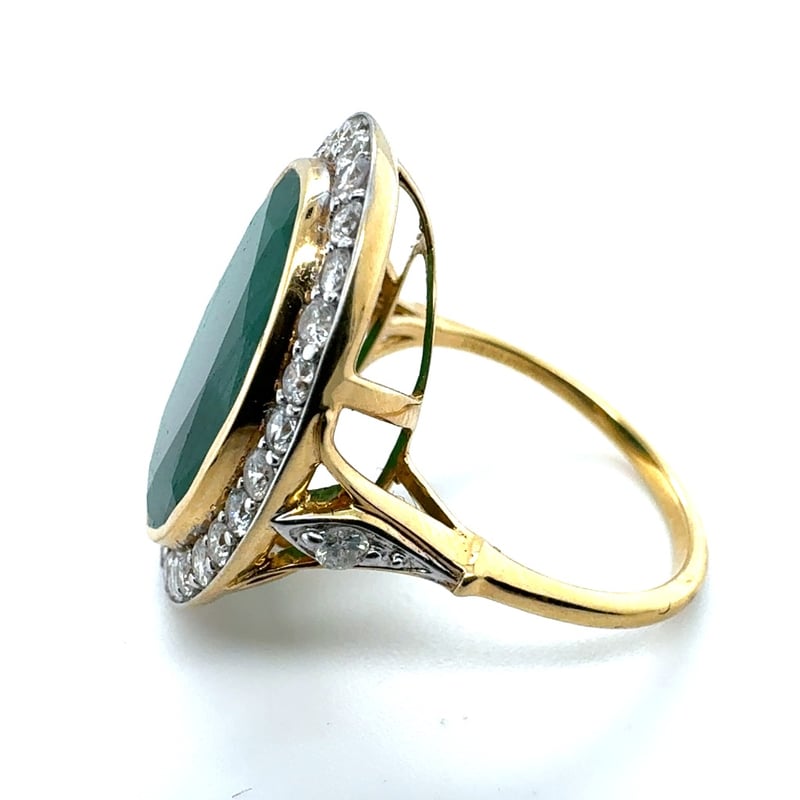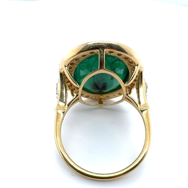 18CT YELLOW GOLD OVAL CUT EMERALD AND DIAMOND RING