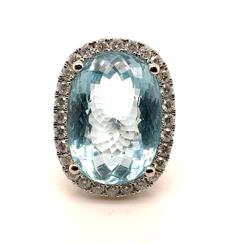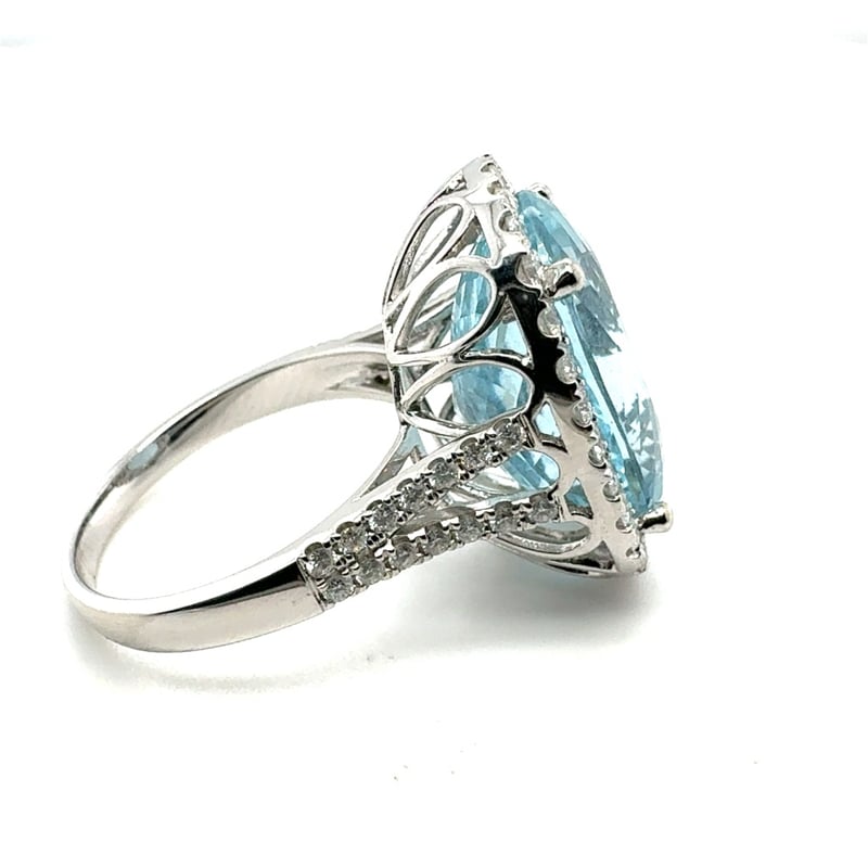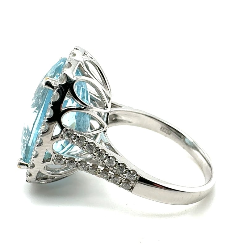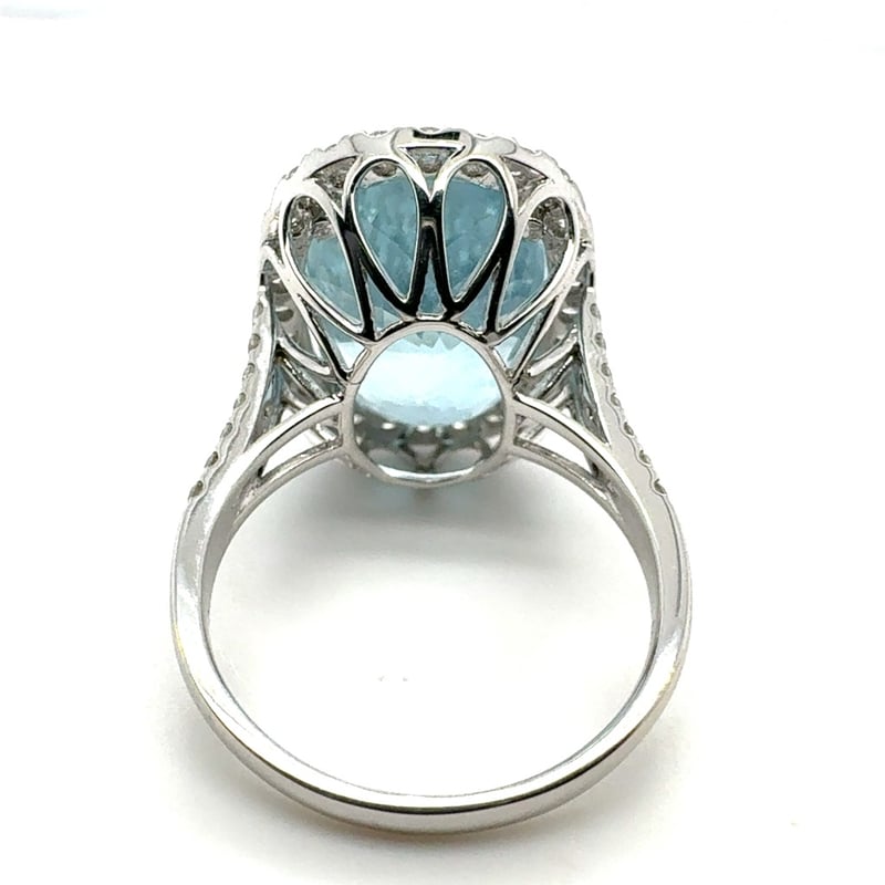 18CT WHITE GOLD OVAL SHAPE AQUAMARINE AND DIAMOND RING