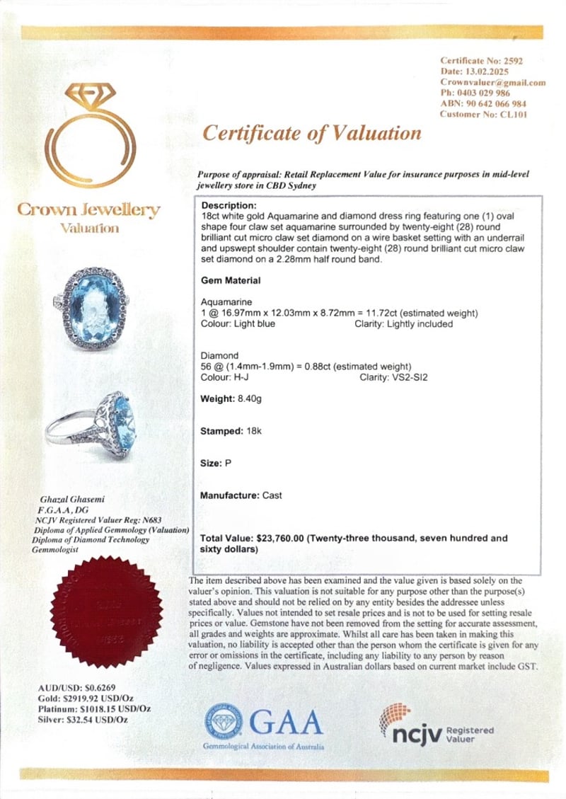 This valuation has been conducted by an independent third-party professional. The valuation amount is an assessment by the issuing valuer and does not reflect the auction value of the item.