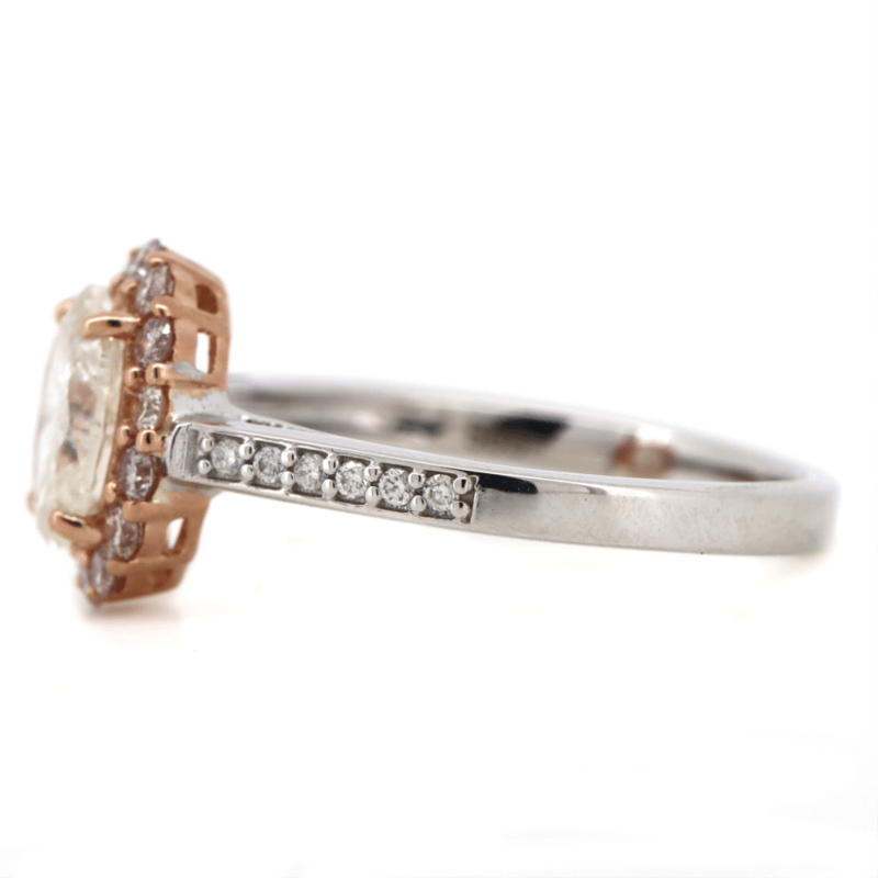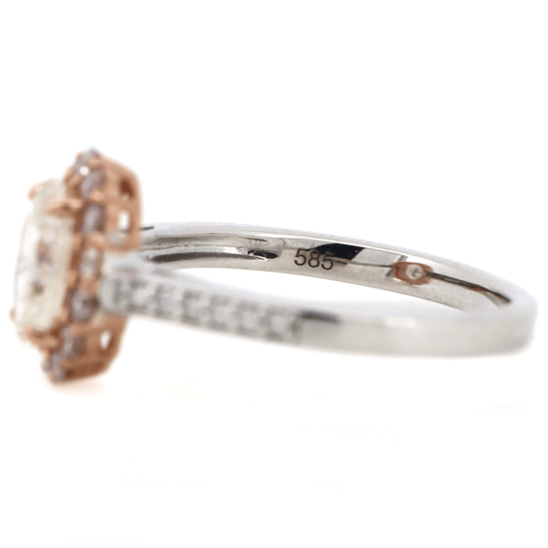 14K WHITE/ROSE GOLD, FANCY PINK DIAMOND AND DIAMOND, HALO RING.