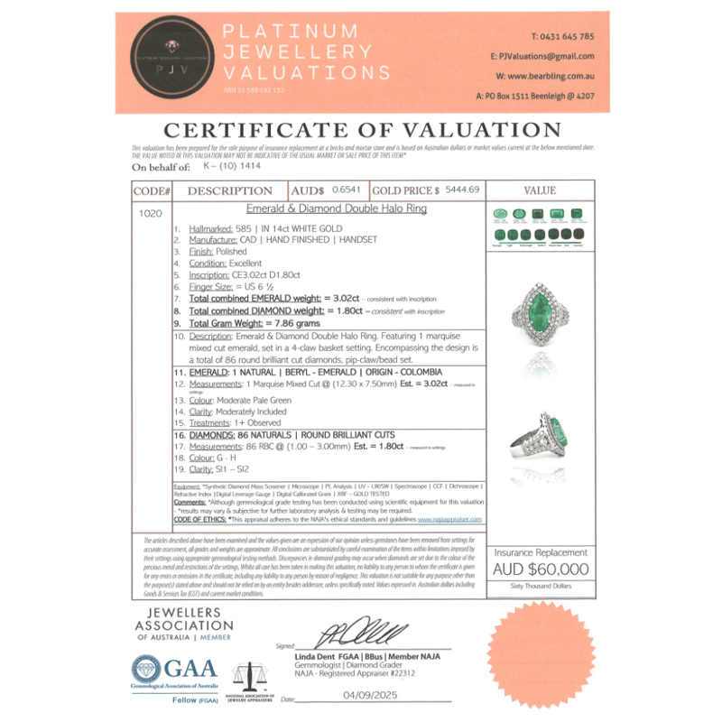 This valuation has been conducted by an independent third-party professional. The valuation amount is an assessment by the issuing valuer and does not reflect the auction value of the item.
