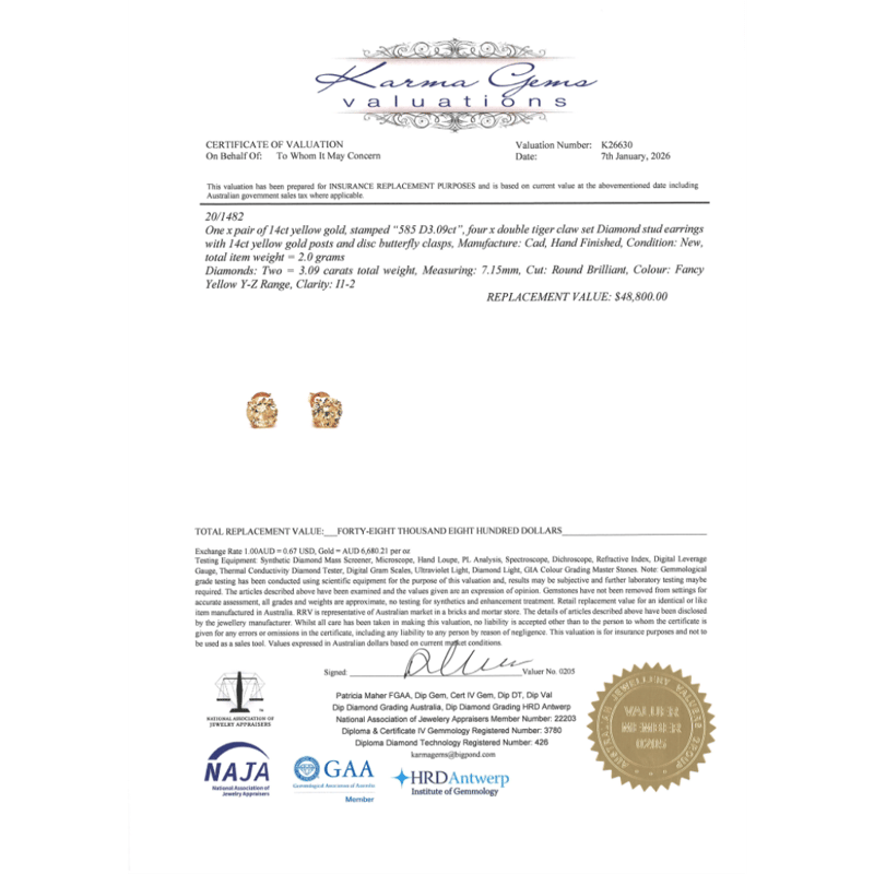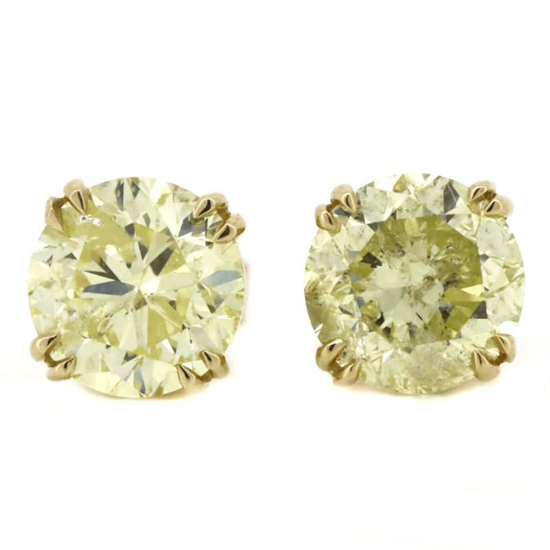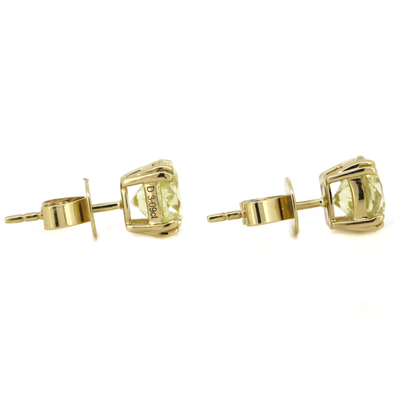 The Earrings Feature, 2 Round Brilliant Cut, Diamonds (3.09Ct Tdw, Fancy Yellow/Y-Z Colour, I1-2 Clarity), 4 Double Claw Set. The Earrings Have Post Backs With Butterfly Clasps.