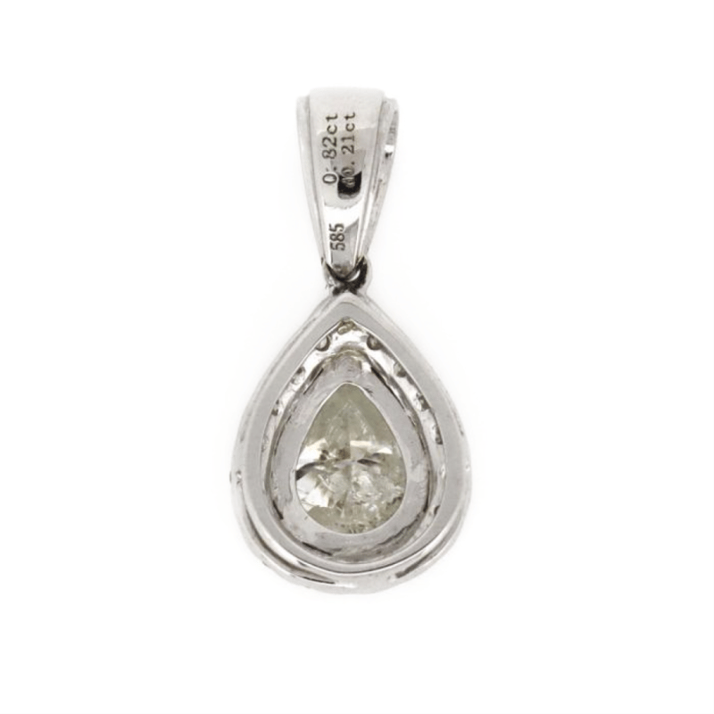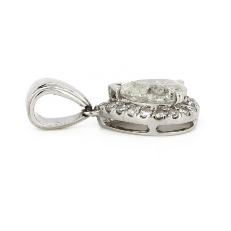 14K WHITE GOLD AND DIAMOND, HALO DROP PENDANT.