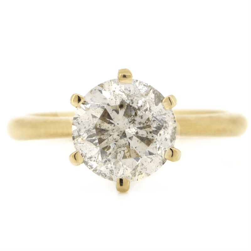The Centre Features, One Round Brilliant Cut, Diamond (3.01Ct, Top Light Brown Colour, Si1-Si2 Clarity), 6 Claw Set. Ring Size P 1/2.