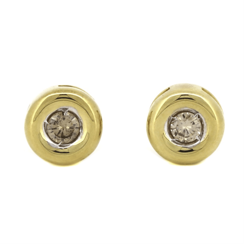 The Centres Feature, 2 Round Brilliant Cut, Top Light Brown, Diamonds (0.50Ct Tdw, Si1-Si2 Clarity), Bezel Full Rim Set. The Earrings Have Post Backs, With 18K Yellow Gold Butterfly Clasps.
