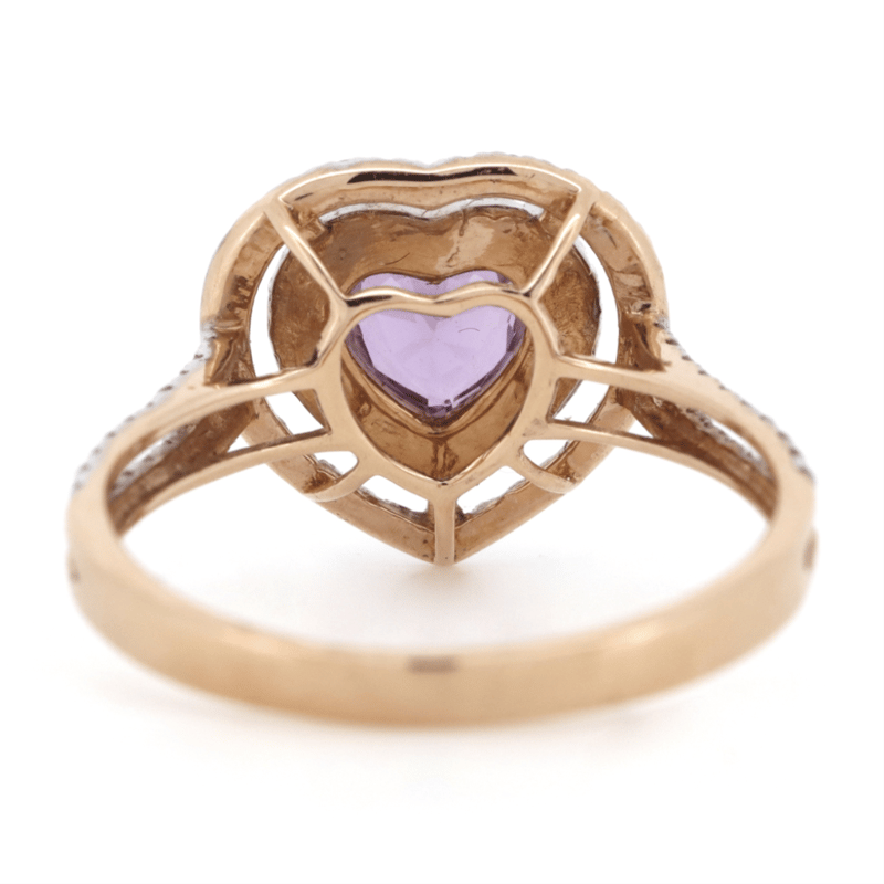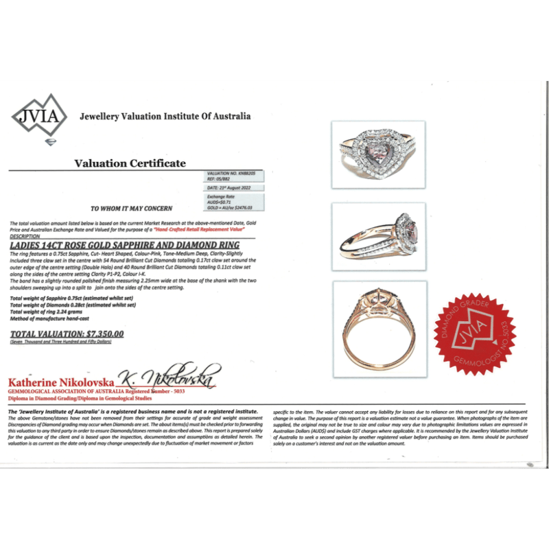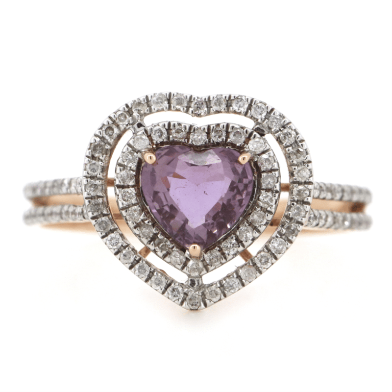 Provenance: The Centre Features, One Heart Cut, Medium Deep Pink, Sapphire (0.75Ct, Slightly Included), 3 Claw Set. Surrounding The Centre In Double Halos And Decorating The Band Are, 94 Round Brilliant Cut, Diamonds (0.28Ct Tdw,I-K Colour, P1-P2 Clarity), Bead Set. Ring Size M 1/2.