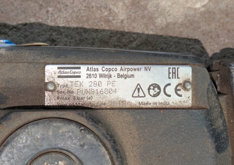Atlas Copco RTEX Pneumatic Breaker. (#1199176) Make: Atlas Copco Model: RTEX Year: 2018 Serial NO: PUN 816004 Include Note: Said to be in working condition. Location: Winnilie , NT. Contact: Mark 0437 318 344