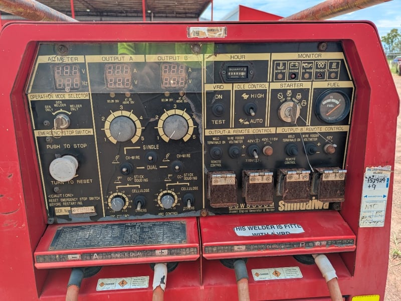Shindaiwa DGW500GM Welding DC Generator. DOM; Circa 2013. Hours: 2,907 Make: Shindaiwa Model: DGW500GM Serial NO: W0041 Include Note: Said to be in working condition. Location: Winnilie , NT. Contact: Mark David - 0437318344 Ref: 1129566