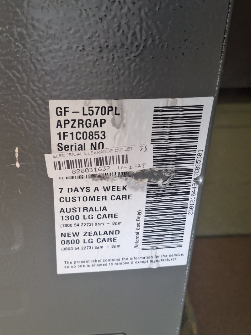 LG 506L Refrigerator, Model GF-L570PL Dimensions H:179cm W:83cm D:70cm DISCLAIMER: All of these fantastically presented products are sold as seconds, returns, scratch & dent stock or similar, as such Lloyds always recommends inspections on items prior to bidding, as some items may be displaying signs of minor faults, dents, wear, or scratches to products that may affect their intended use.
