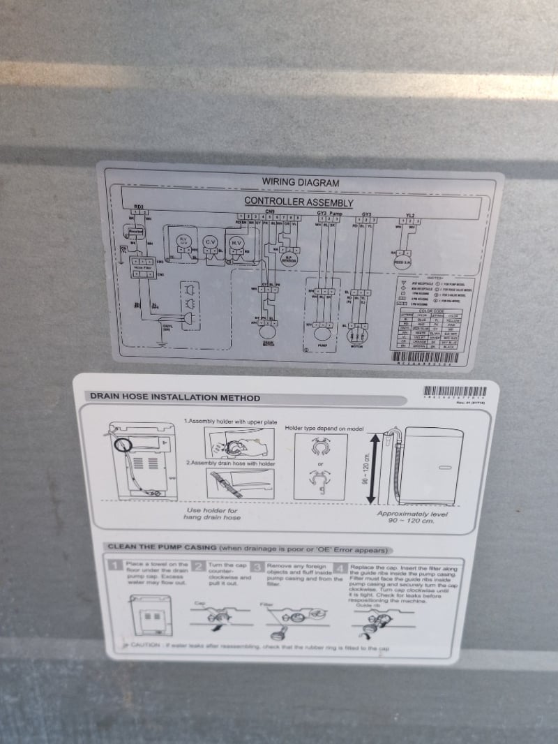 TurboDrum Technology Washing Machine Dimensions H:102cm W:63cm D:60cm