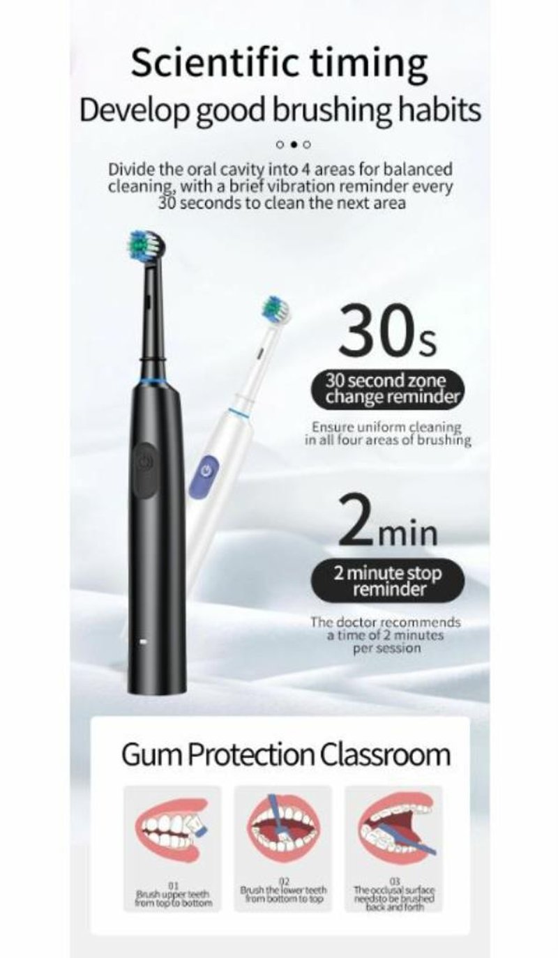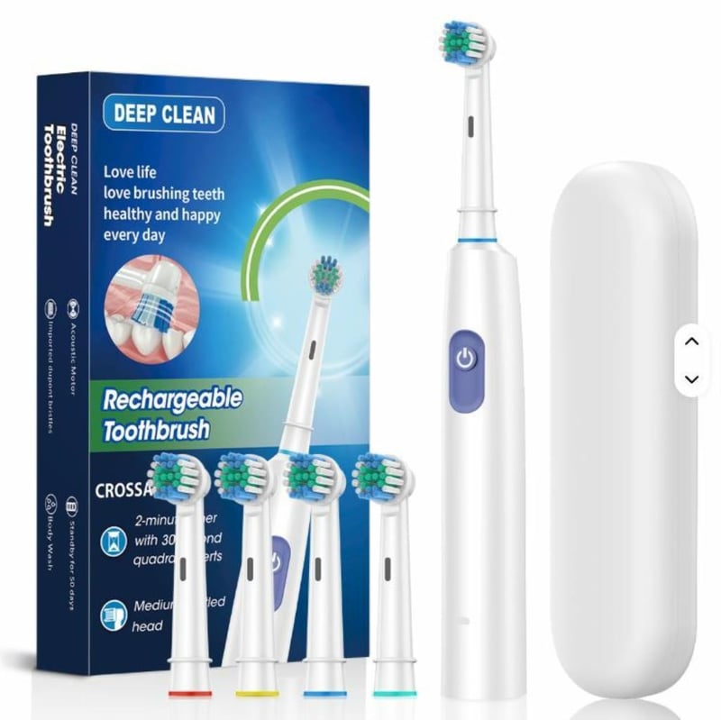 Electric Toothbrush Rotating Brush IPX7 Travel Fashion Teeth Whitening Automatic Sonic Toothbrush 4 x Brush Tips Soft Brissle (NEW IN BOX) WHITE