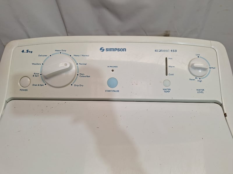 Simpson EziSet 450 Top-load Washing Machine Dimensions H:100cm W:58cm D:60cm