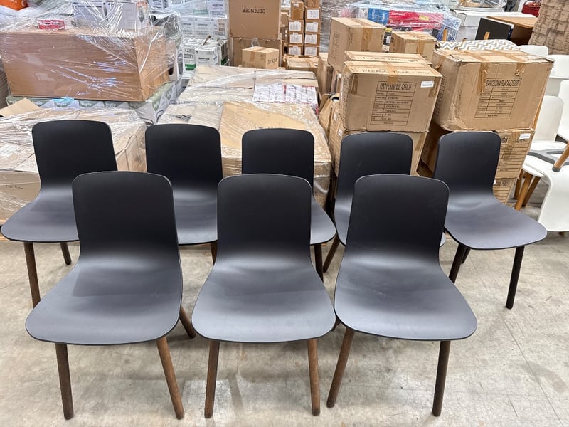 Chair, vitra, jasper Morrison, colour - black/timber.Approx dimensions: 80h X 40w X 50d Quantity: 8, sold as lot.