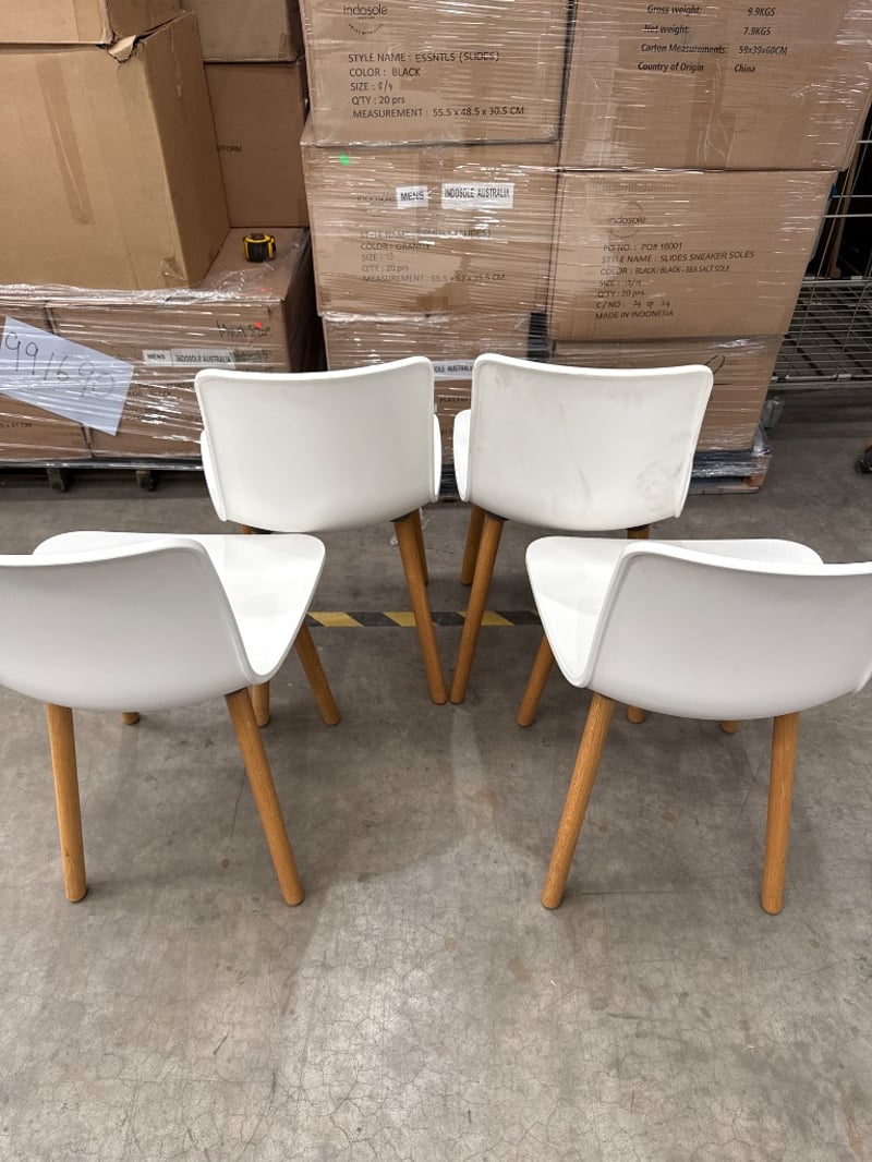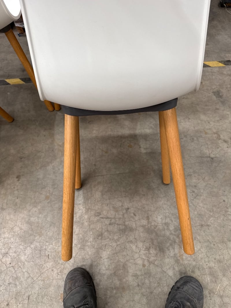 Chair, vitra, jasper Morrison, colour white/ timber. Approx dimensions: 80h X 40w X 50 d.Quantity: 4 chairs, sold as lot