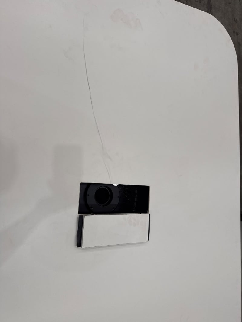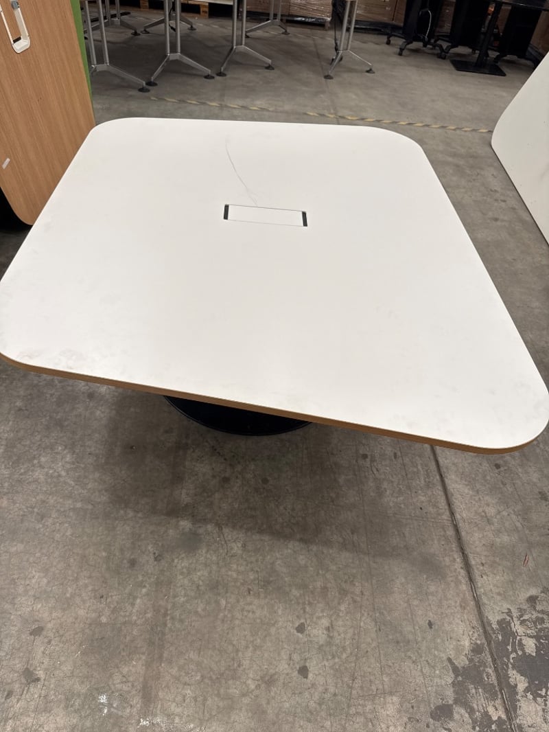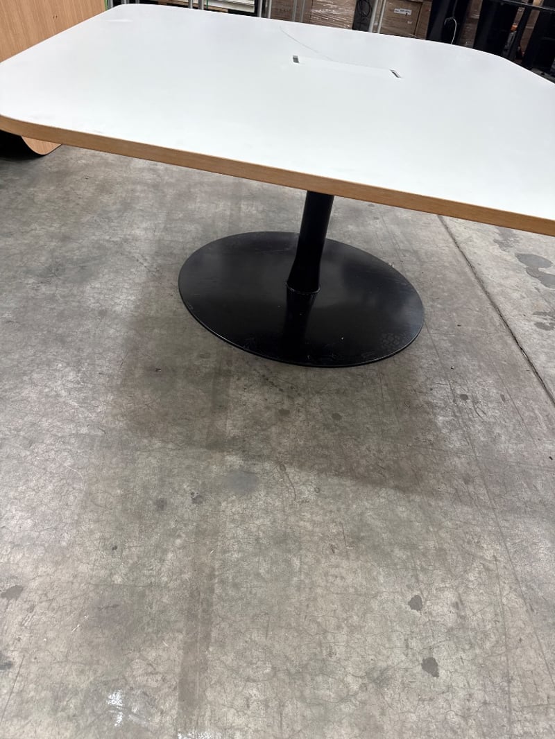 Table, Unknown Brand, Power point access, Colour White/ Black. Approx Dimensions- 73h X 197w X 150d.
